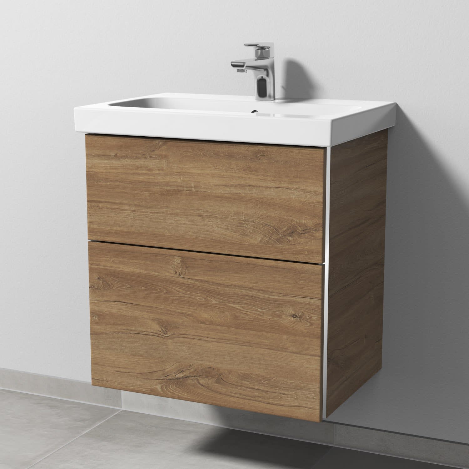 Sanipa 3way Waschtischunterbau für Keramik-Waschtisch iCon Light 60 cm, 2 Auszüge mit Griffleisten
