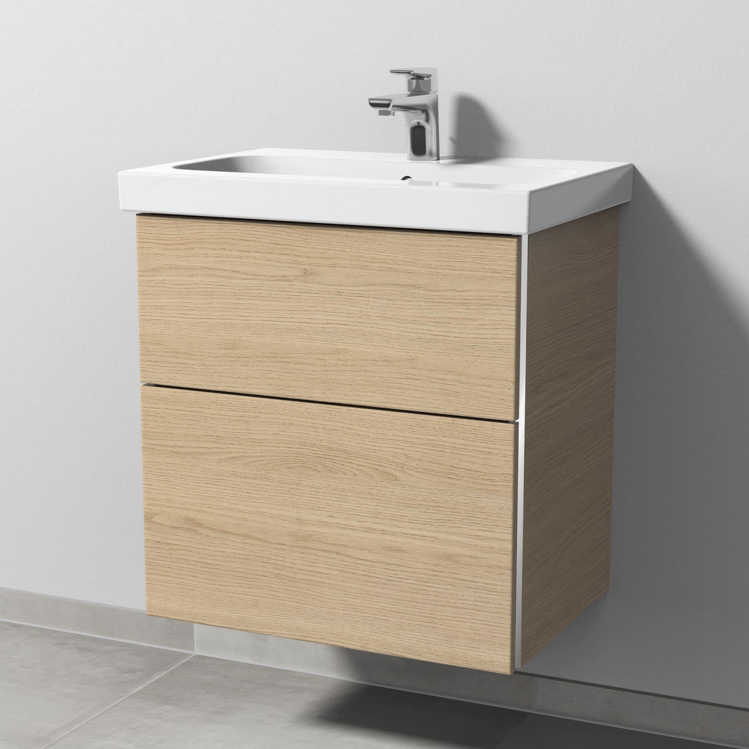 Sanipa 3way Waschtischunterbau für Keramik-Waschtisch iCon Light 60 cm, 2 Auszüge mit Griffleisten