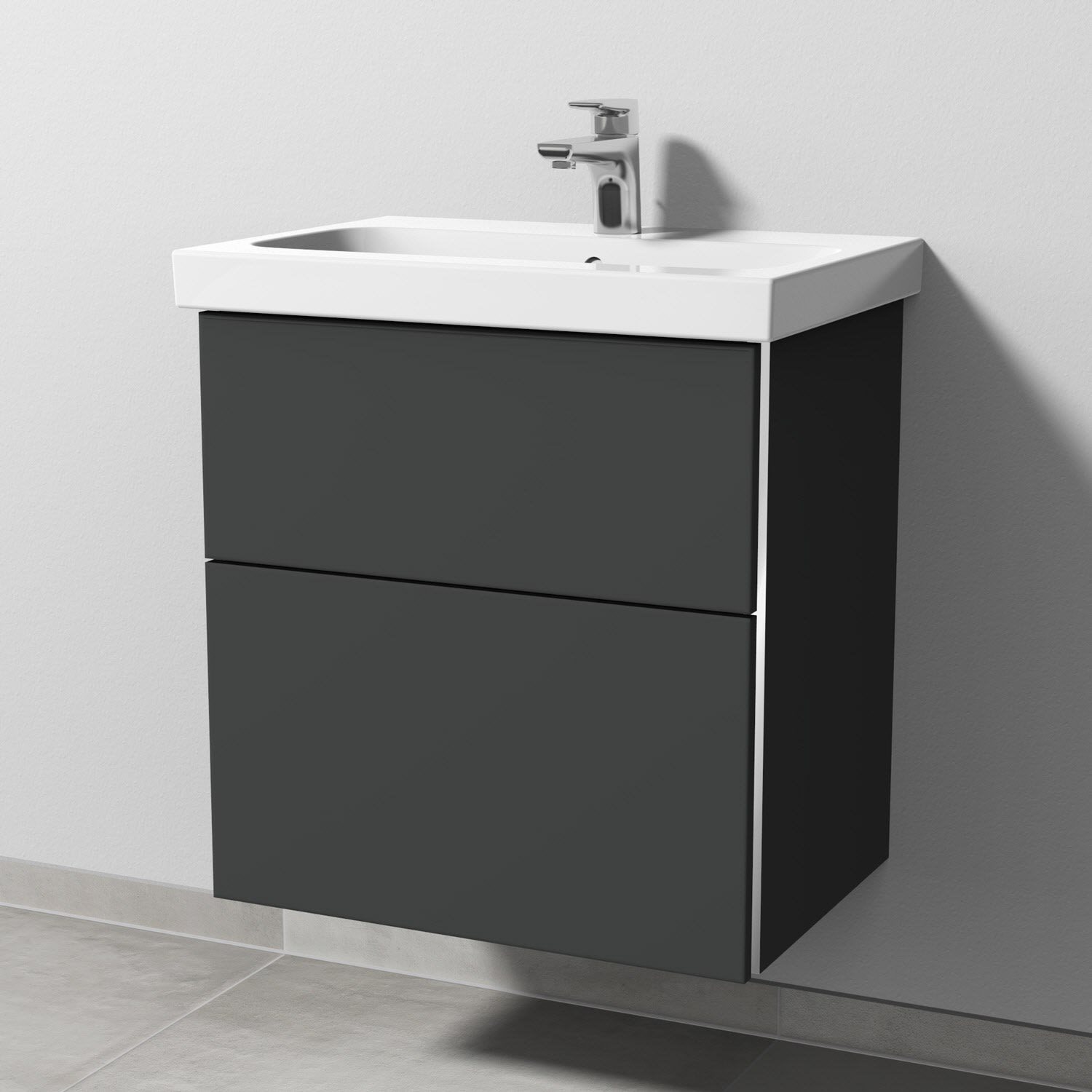 Sanipa 3way Waschtischunterbau für Keramik-Waschtisch iCon Light 60 cm, 2 Auszüge mit Griffleisten