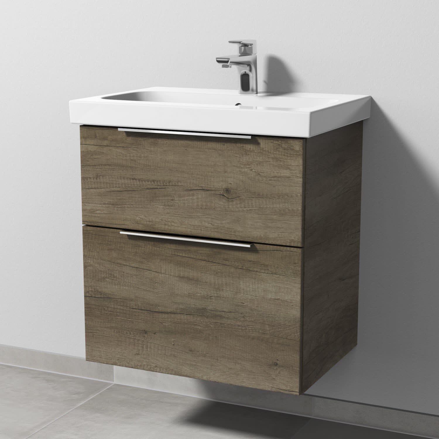 Sanipa 3way Waschtischunterbau für Keramik-Waschtisch iCon Light 60 cm, 2 Auszüge mit Aufsatzgriff