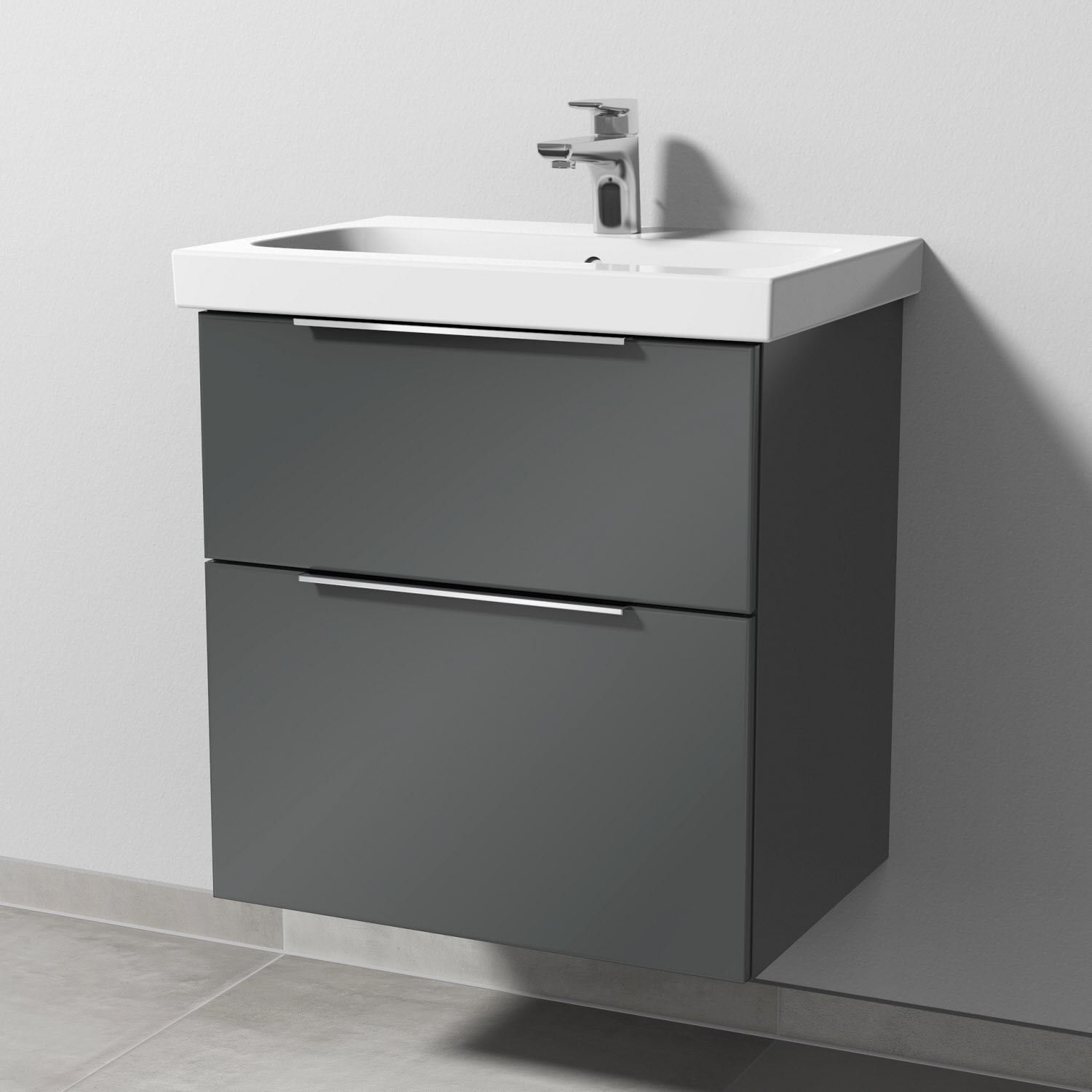 Sanipa 3way Waschtischunterbau für Keramik-Waschtisch iCon Light 60 cm, 2 Auszüge mit Aufsatzgriff