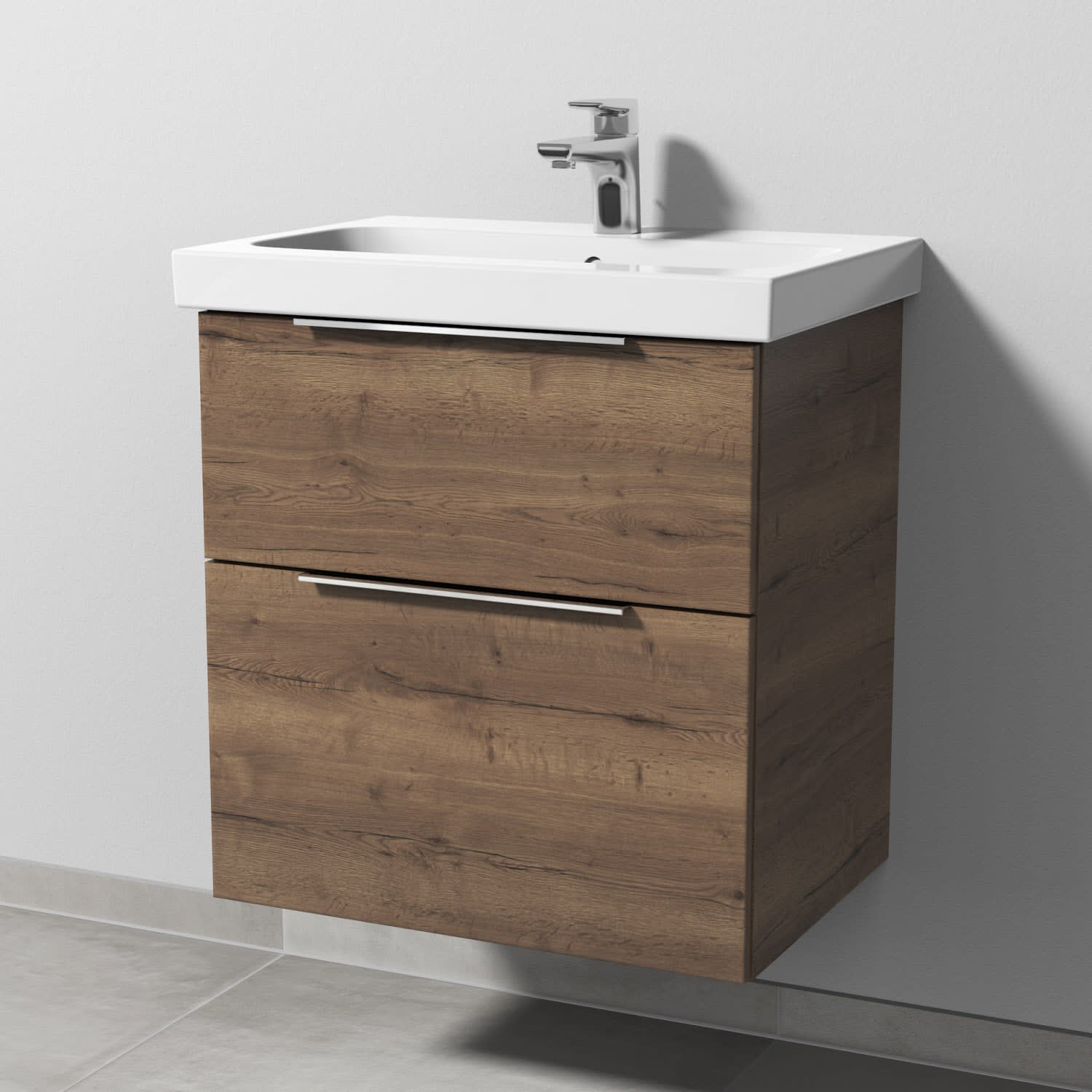 Sanipa 3way Waschtischunterbau für Keramik-Waschtisch iCon Light 60 cm, 2 Auszüge mit Aufsatzgriff