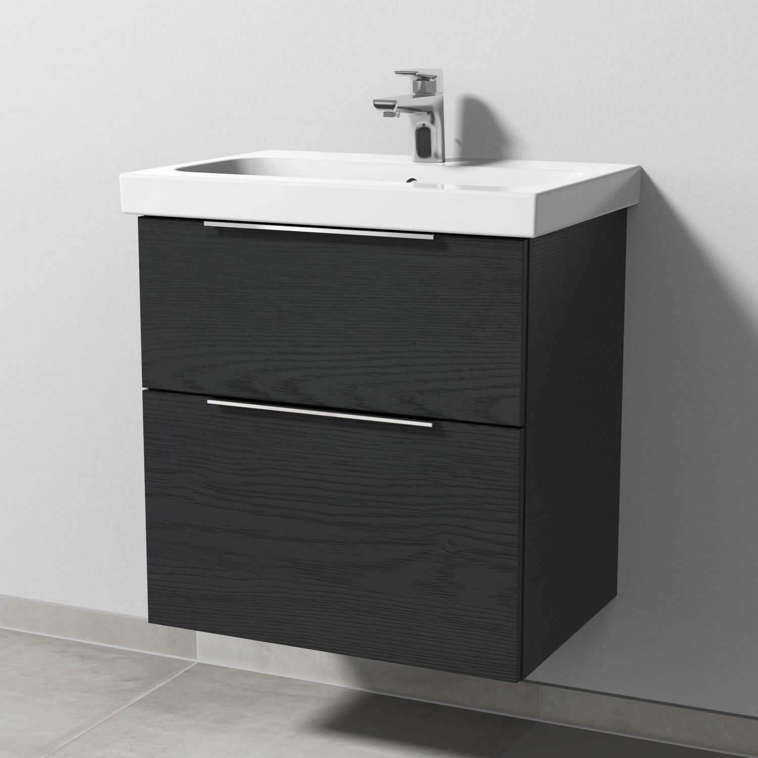 Sanipa 3way Waschtischunterbau für Keramik-Waschtisch iCon Light 60 cm, 2 Auszüge mit Aufsatzgriff