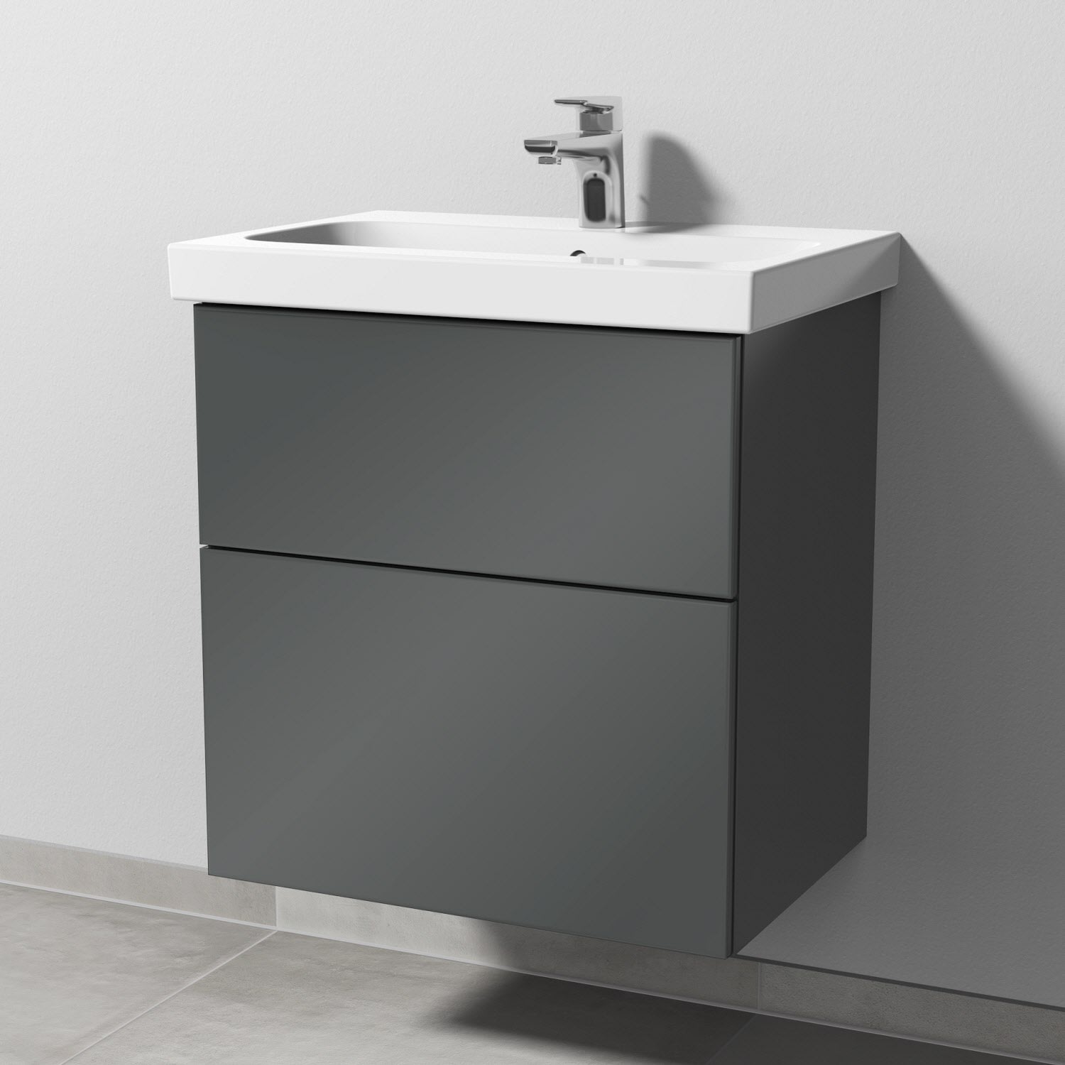 Sanipa 3way Waschtischunterbau für Keramik-Waschtisch iCon Light 60 cm, 2 Auszüge mit Push to open