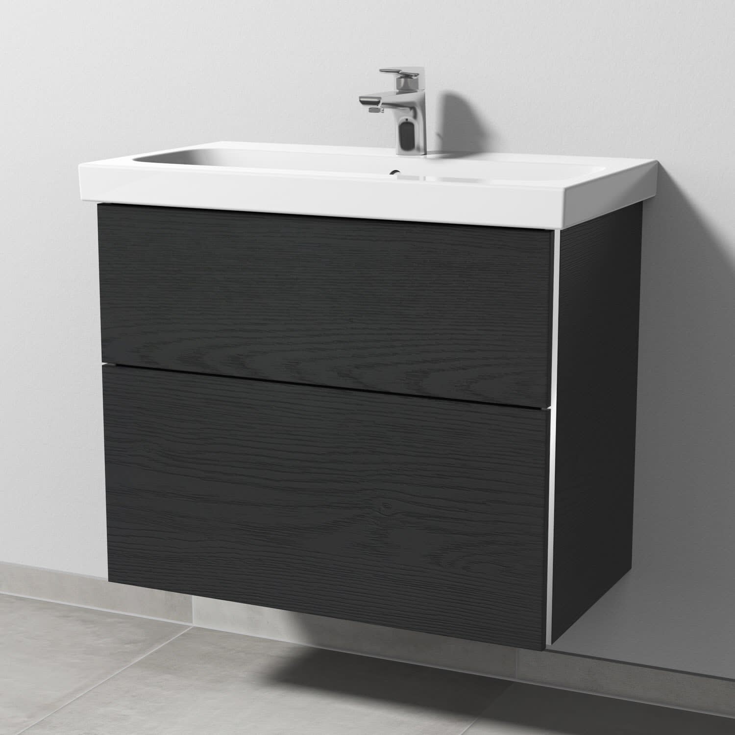 Sanipa 3way Waschtischunterbau für Keramik-Waschtisch iCon Light 75 cm, 2 Auszüge mit Griffleisten