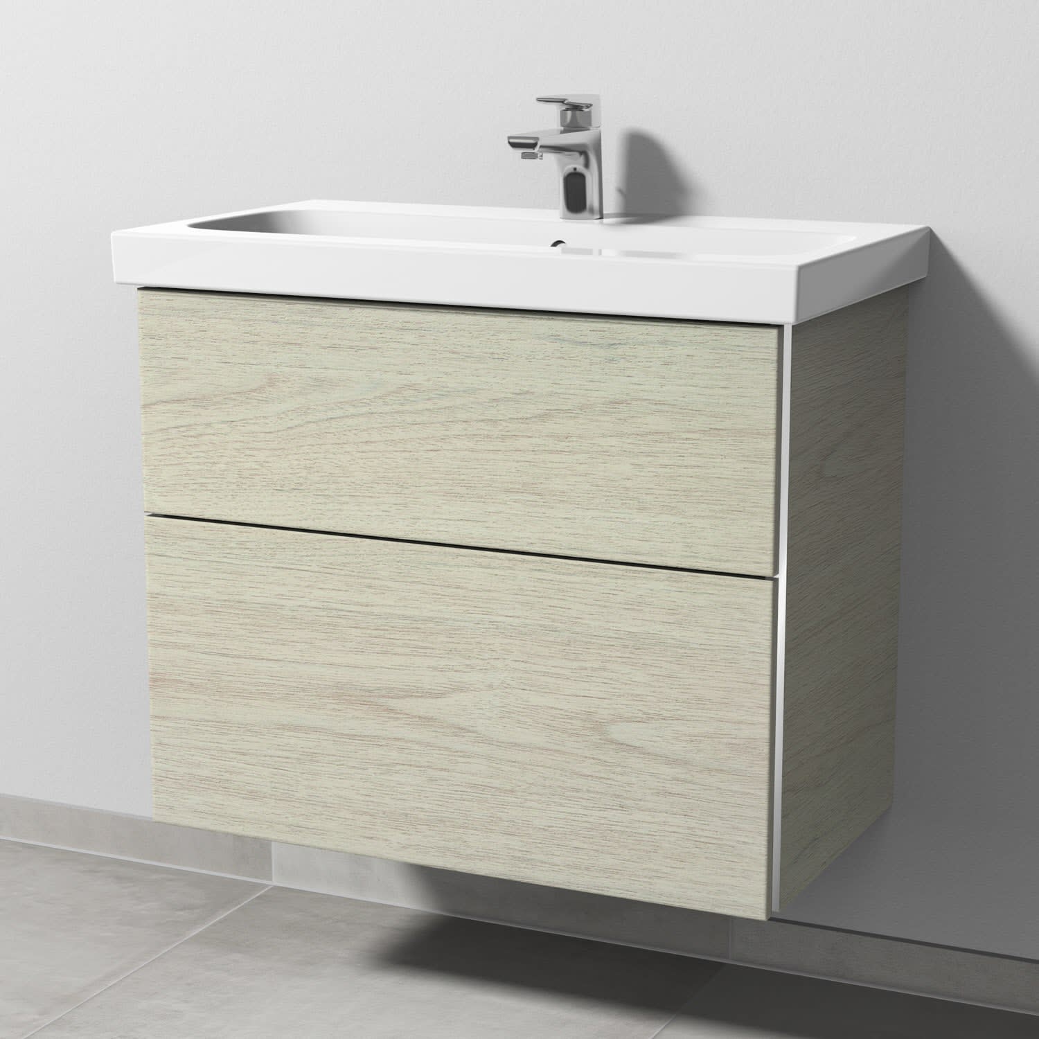 Sanipa 3way Waschtischunterbau für Keramik-Waschtisch iCon Light 75 cm, 2 Auszüge mit Griffleisten