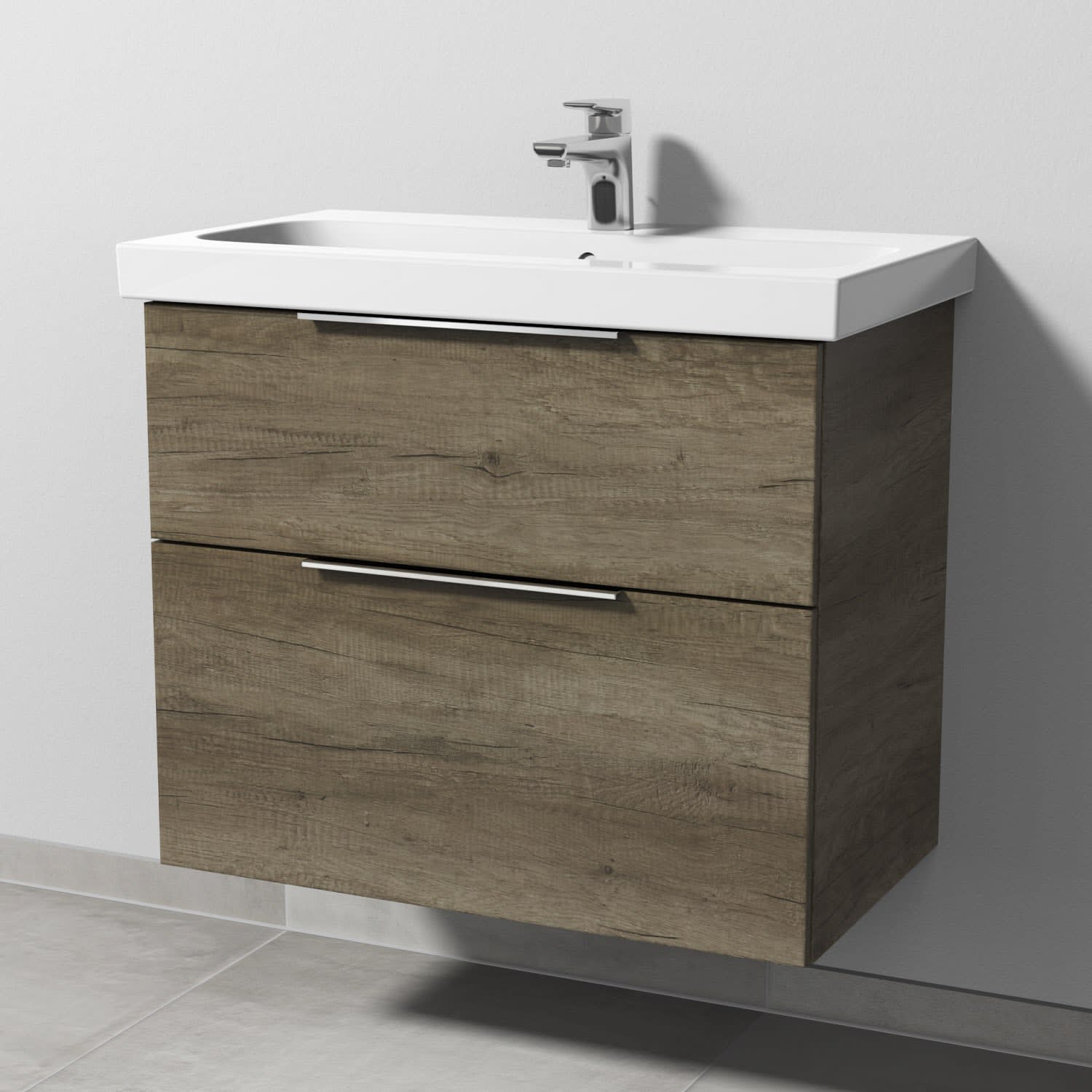 Sanipa 3way Waschtischunterbau für Keramik-Waschtisch iCon Light 75 cm, 2 Auszüge mit Aufsatzgriff
