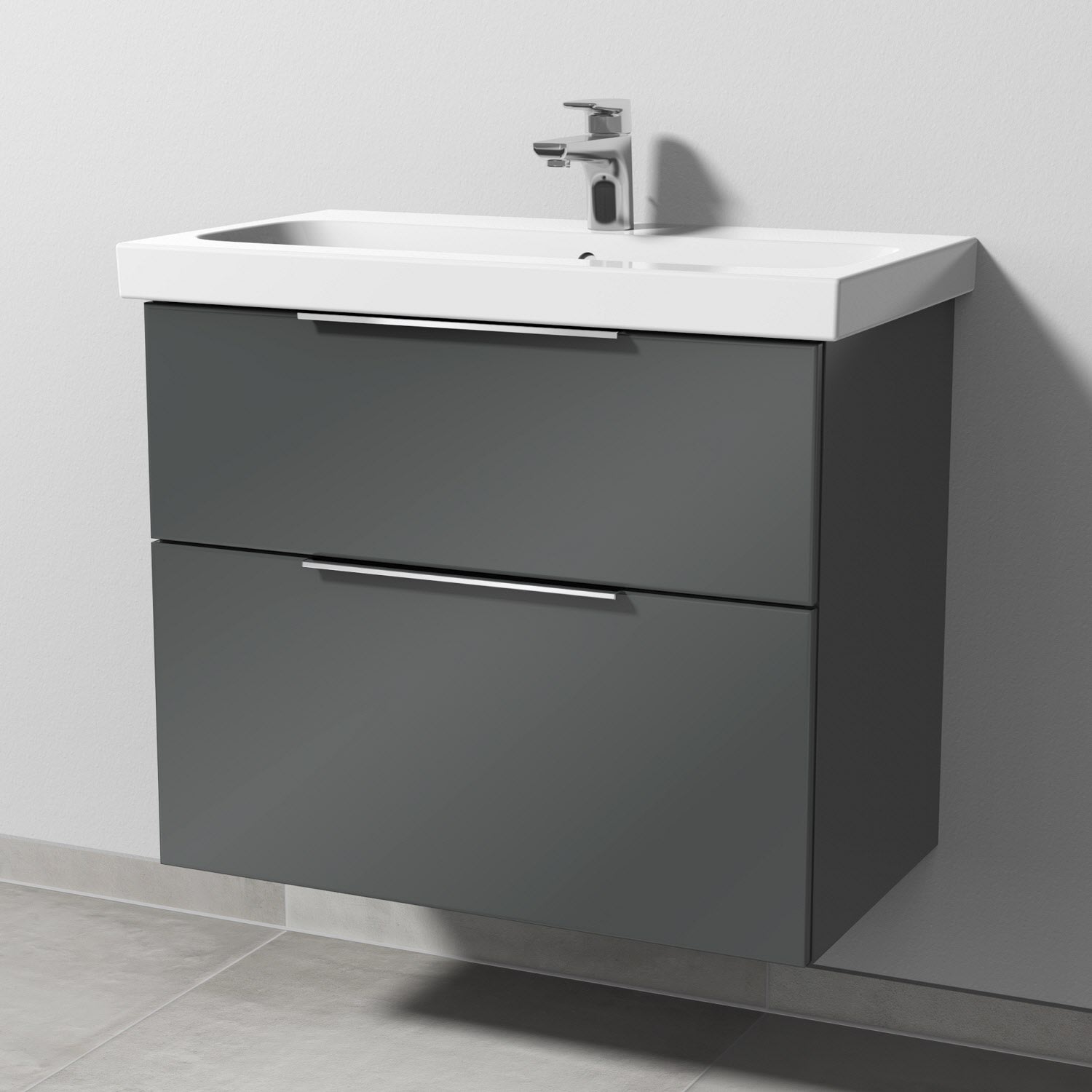 Sanipa 3way Waschtischunterbau für Keramik-Waschtisch iCon Light 75 cm, 2 Auszüge mit Aufsatzgriff