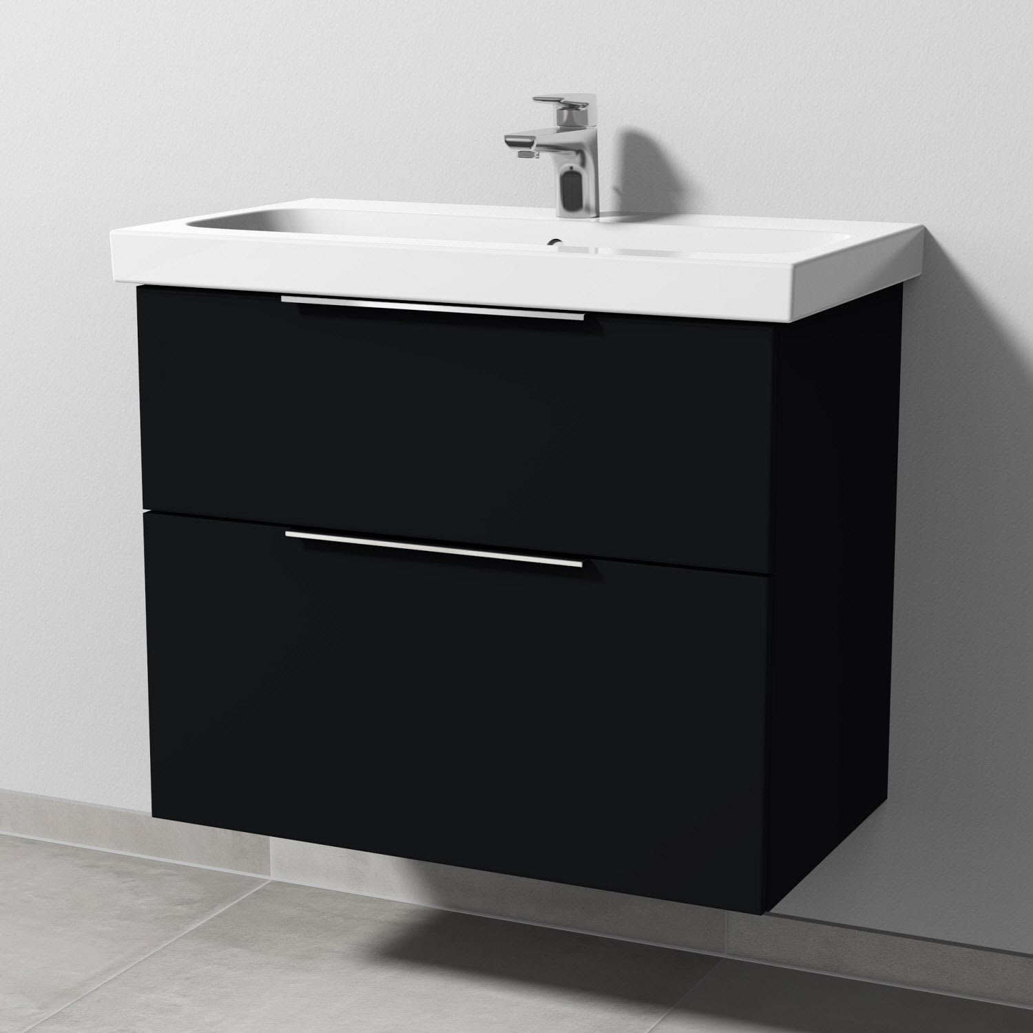Sanipa 3way Waschtischunterbau für Keramik-Waschtisch iCon Light 75 cm, 2 Auszüge mit Aufsatzgriff