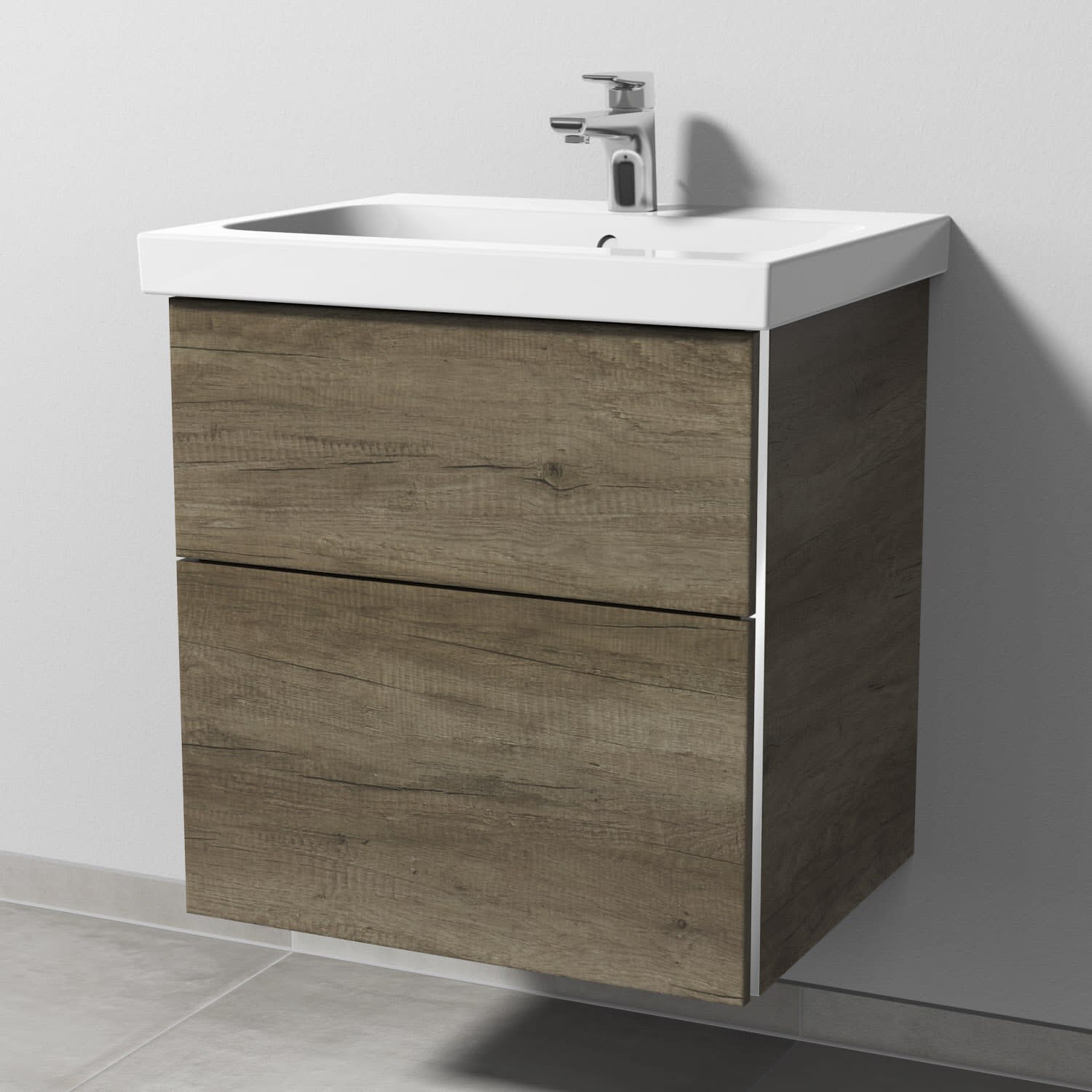 Sanipa 3way Waschtischunterbau für Keramik-Waschtisch iCon Light 60 cm, 2 Auszüge mit Griffleisten