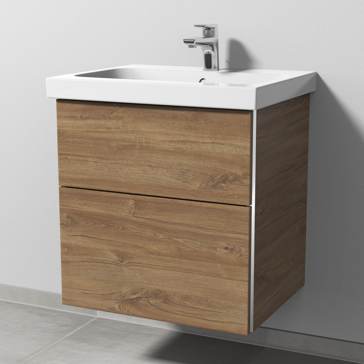 Sanipa 3way Waschtischunterbau für Keramik-Waschtisch iCon Light 60 cm, 2 Auszüge mit Griffleisten