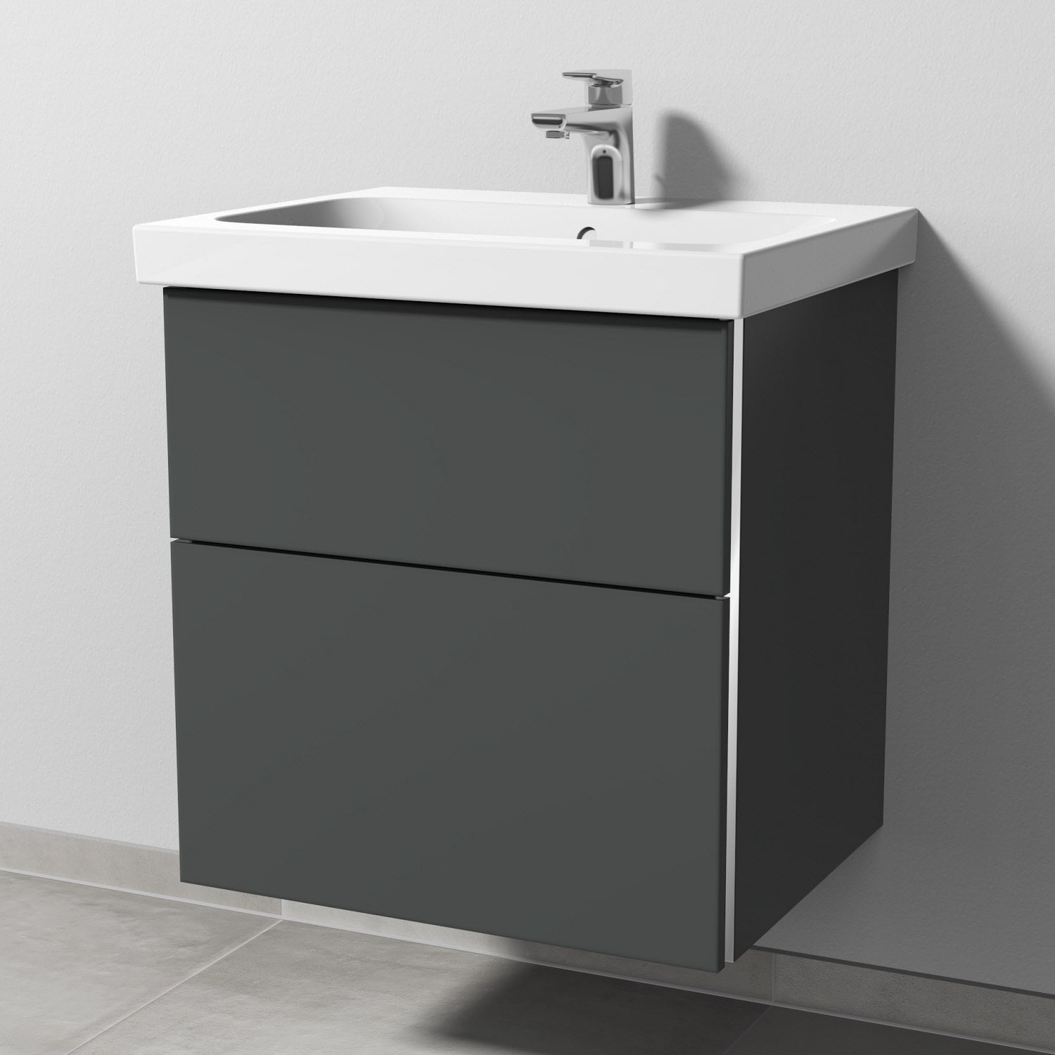 Sanipa 3way Waschtischunterbau für Keramik-Waschtisch iCon Light 60 cm, 2 Auszüge mit Griffleisten