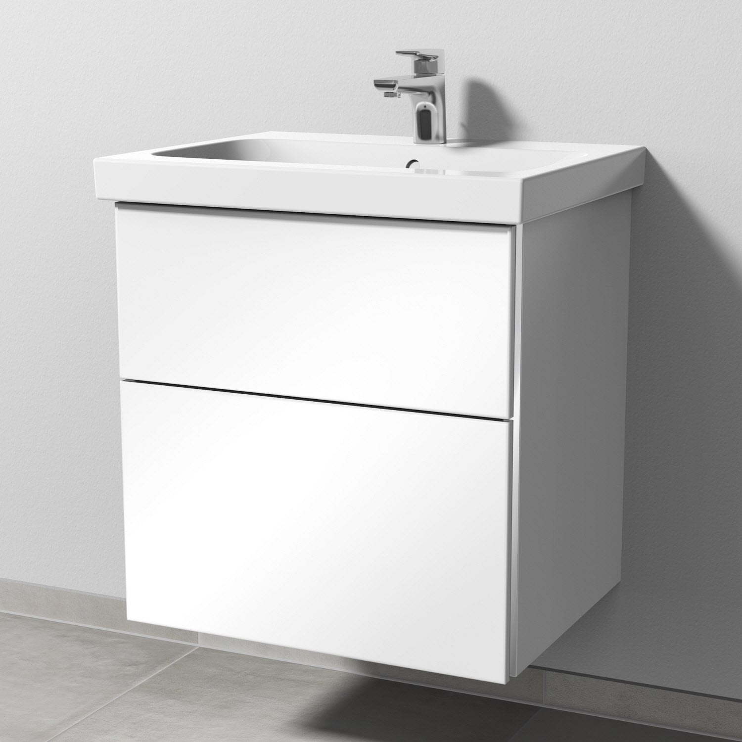Sanipa 3way Waschtischunterbau für Keramik-Waschtisch iCon Light 60 cm, 2 Auszüge mit Griffleisten
