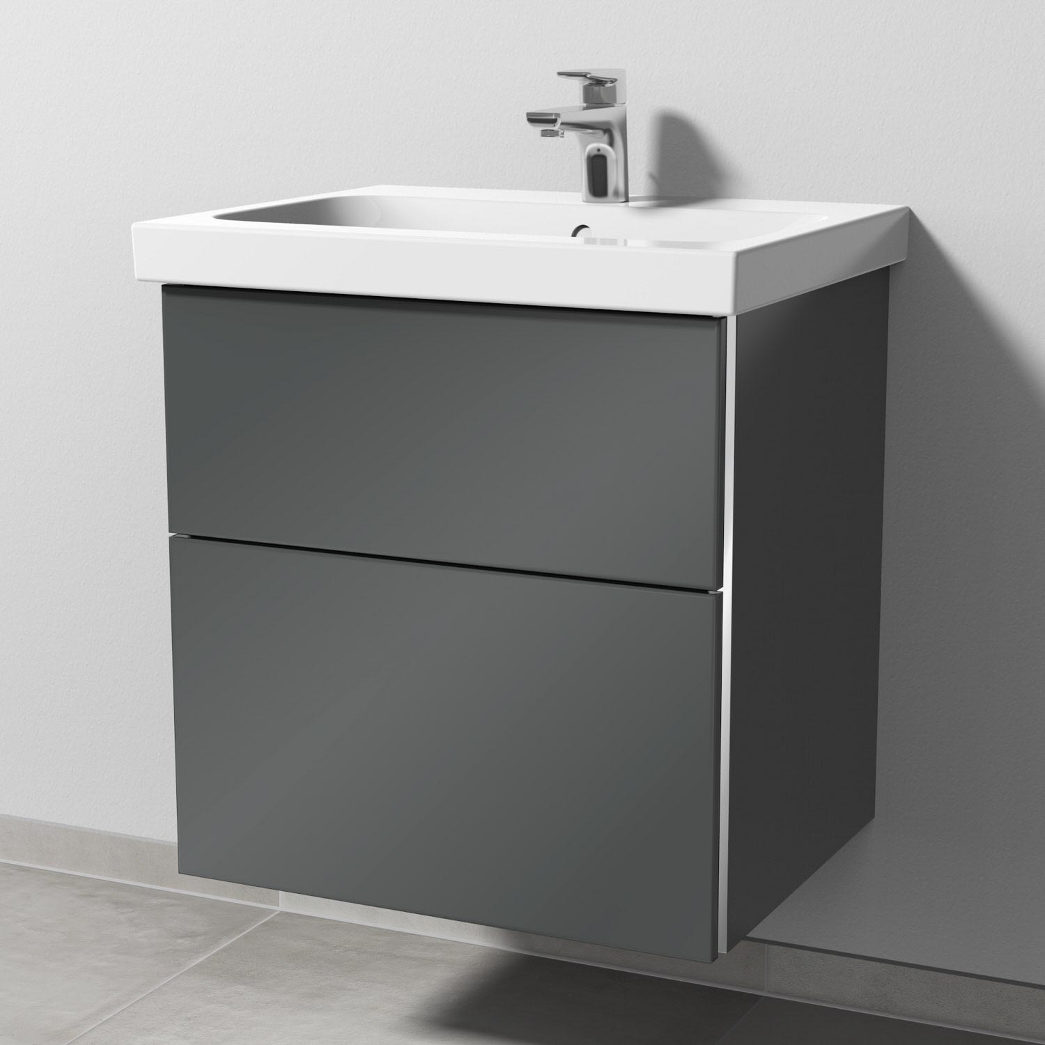 Sanipa 3way Waschtischunterbau für Keramik-Waschtisch iCon Light 60 cm, 2 Auszüge mit Griffleisten