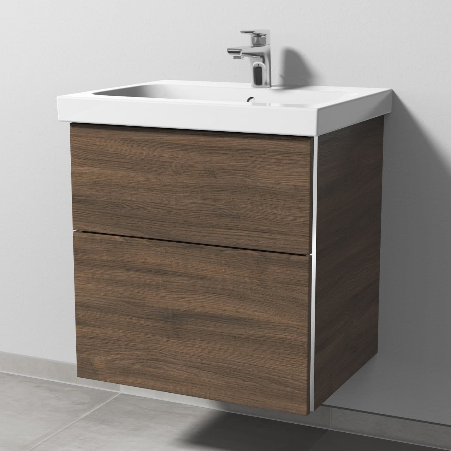 Sanipa 3way Waschtischunterbau für Keramik-Waschtisch iCon Light 60 cm, 2 Auszüge mit Griffleisten