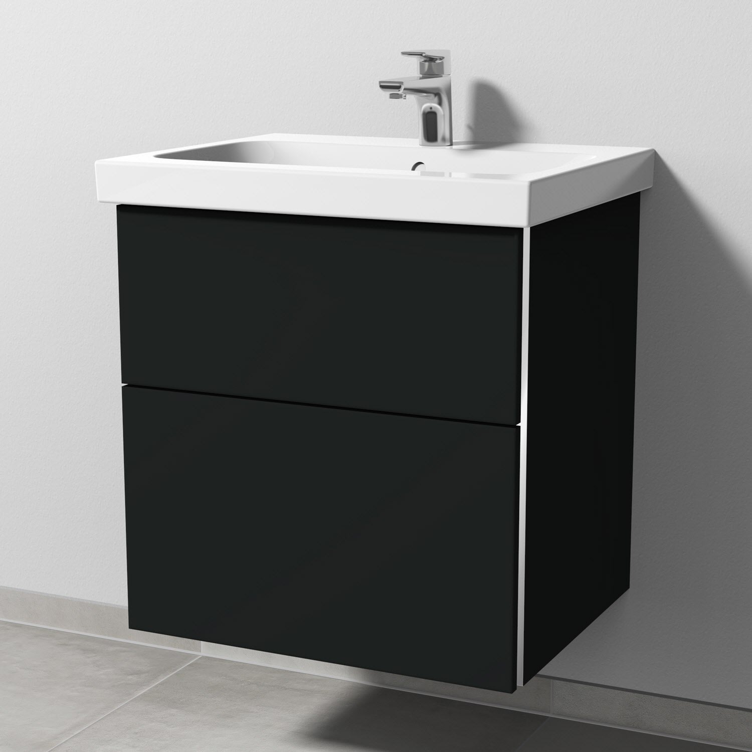 Sanipa 3way Waschtischunterbau für Keramik-Waschtisch iCon Light 60 cm, 2 Auszüge mit Griffleisten