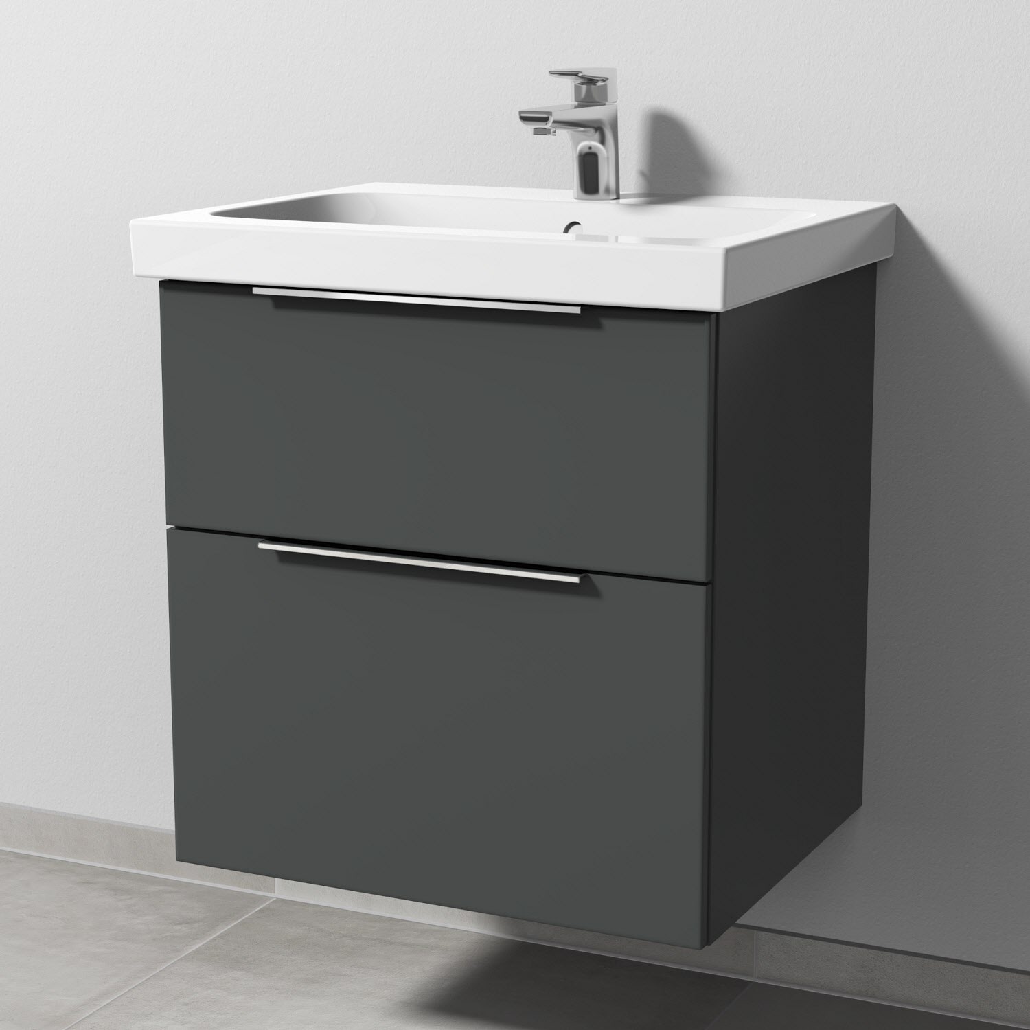 Sanipa 3way Waschtischunterbau für Keramik-Waschtisch iCon Light 60 cm, 2 Auszüge mit Aufsatzgriff