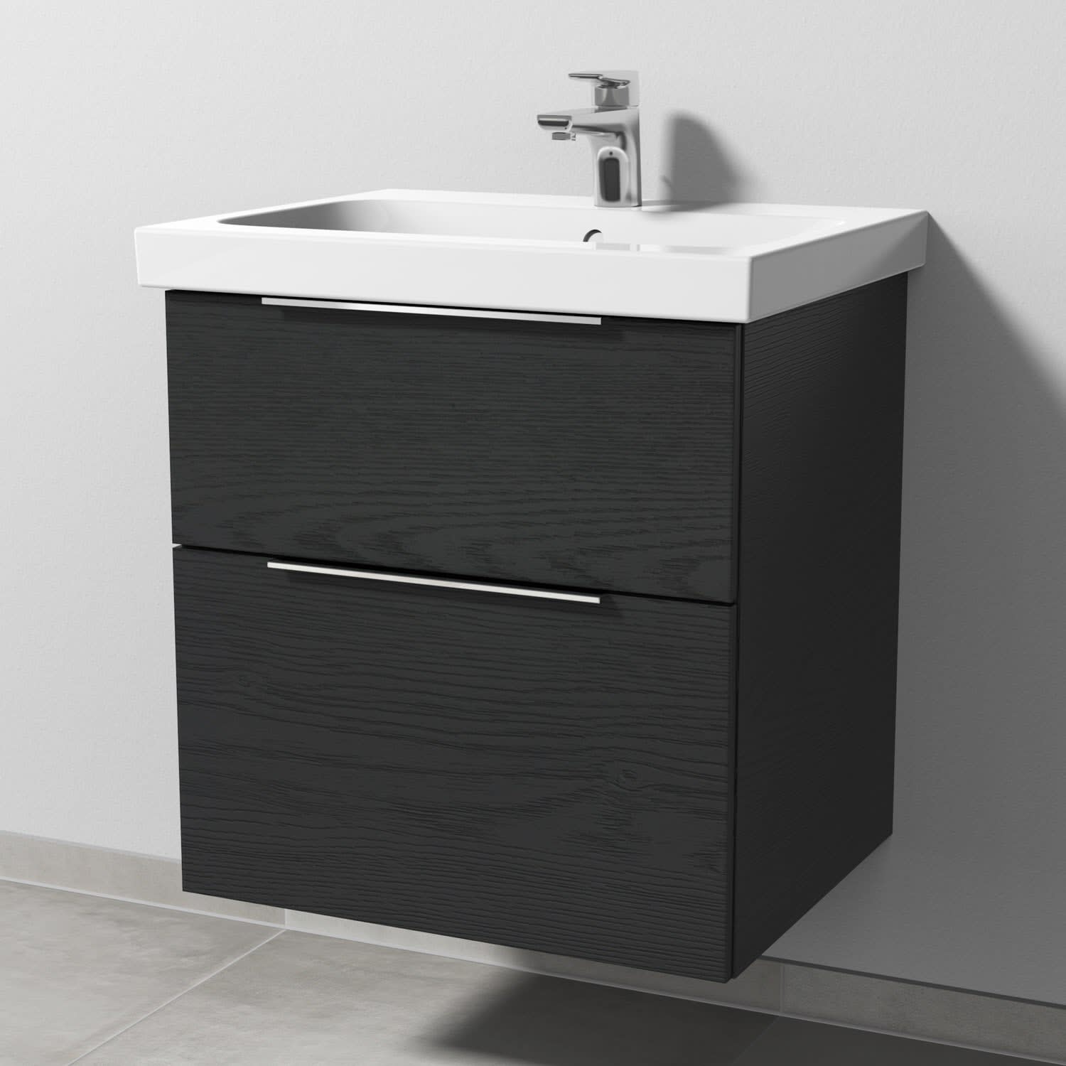 Sanipa 3way Waschtischunterbau für Keramik-Waschtisch iCon Light 60 cm, 2 Auszüge mit Aufsatzgriff