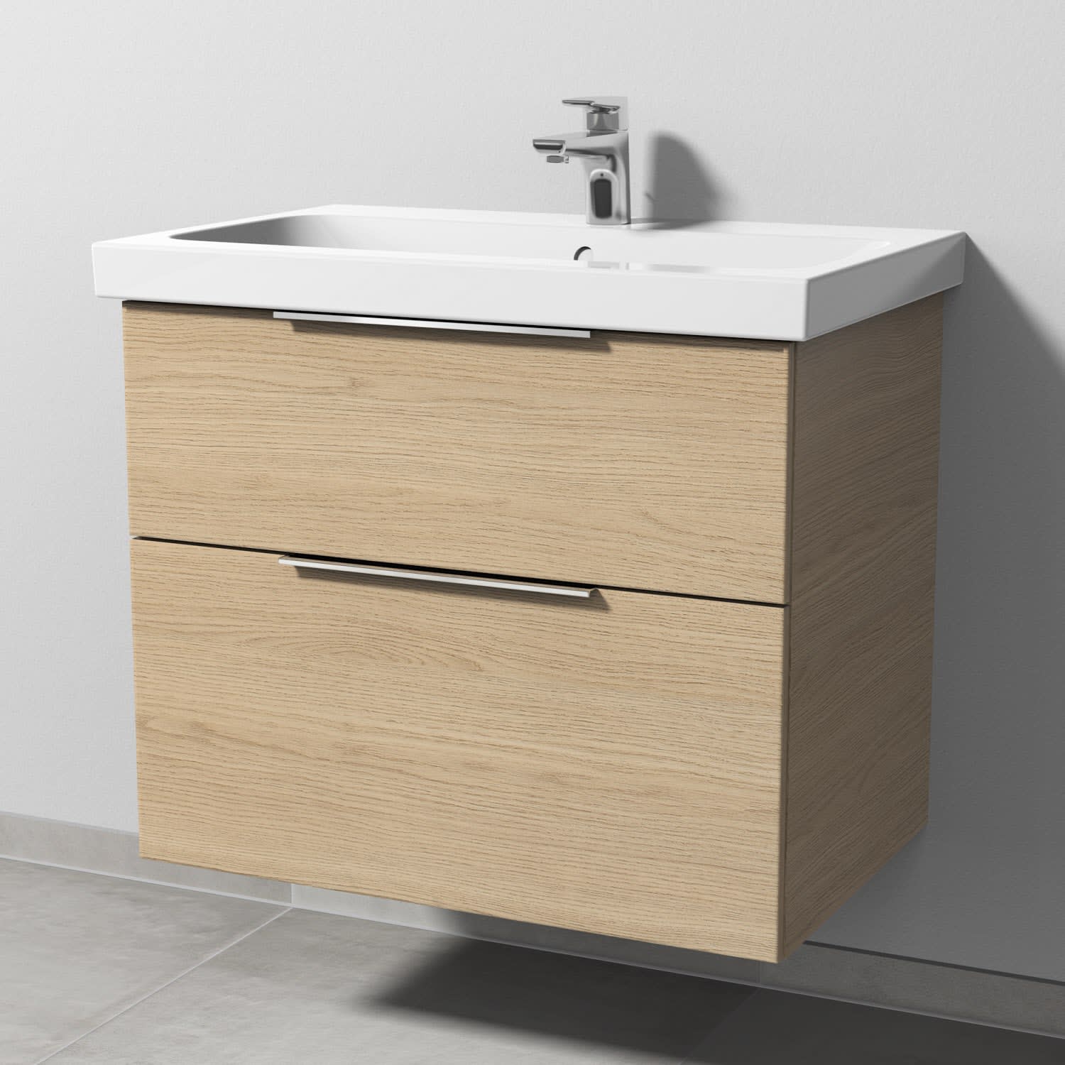 Sanipa 3way Waschtischunterbau für Keramik-Waschtisch iCon Light 75 cm, 2 Auszüge mit Aufsatzgriff