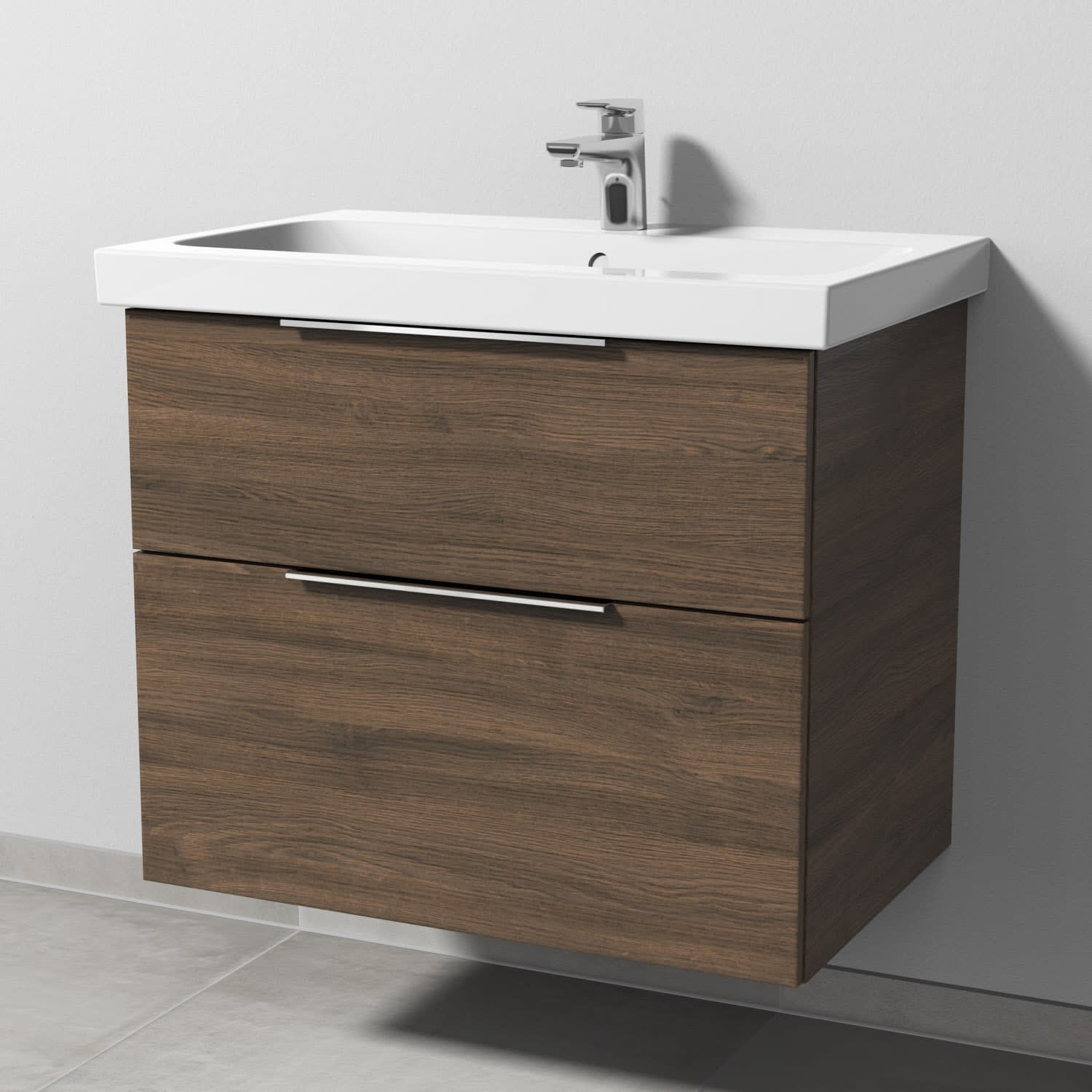 Sanipa 3way Waschtischunterbau für Keramik-Waschtisch iCon Light 75 cm, 2 Auszüge mit Aufsatzgriff