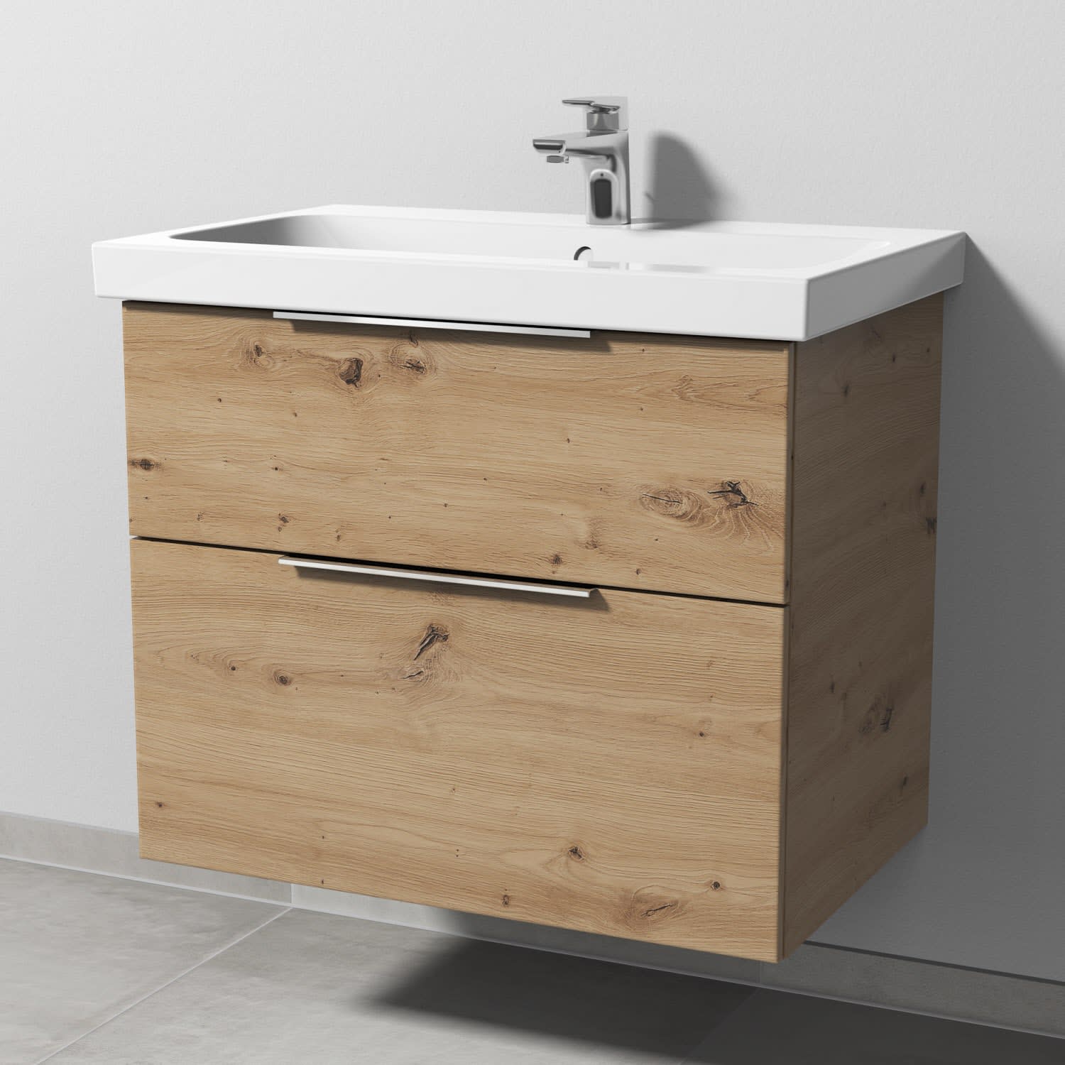Sanipa 3way Waschtischunterbau für Keramik-Waschtisch iCon Light 75 cm, 2 Auszüge mit Aufsatzgriff