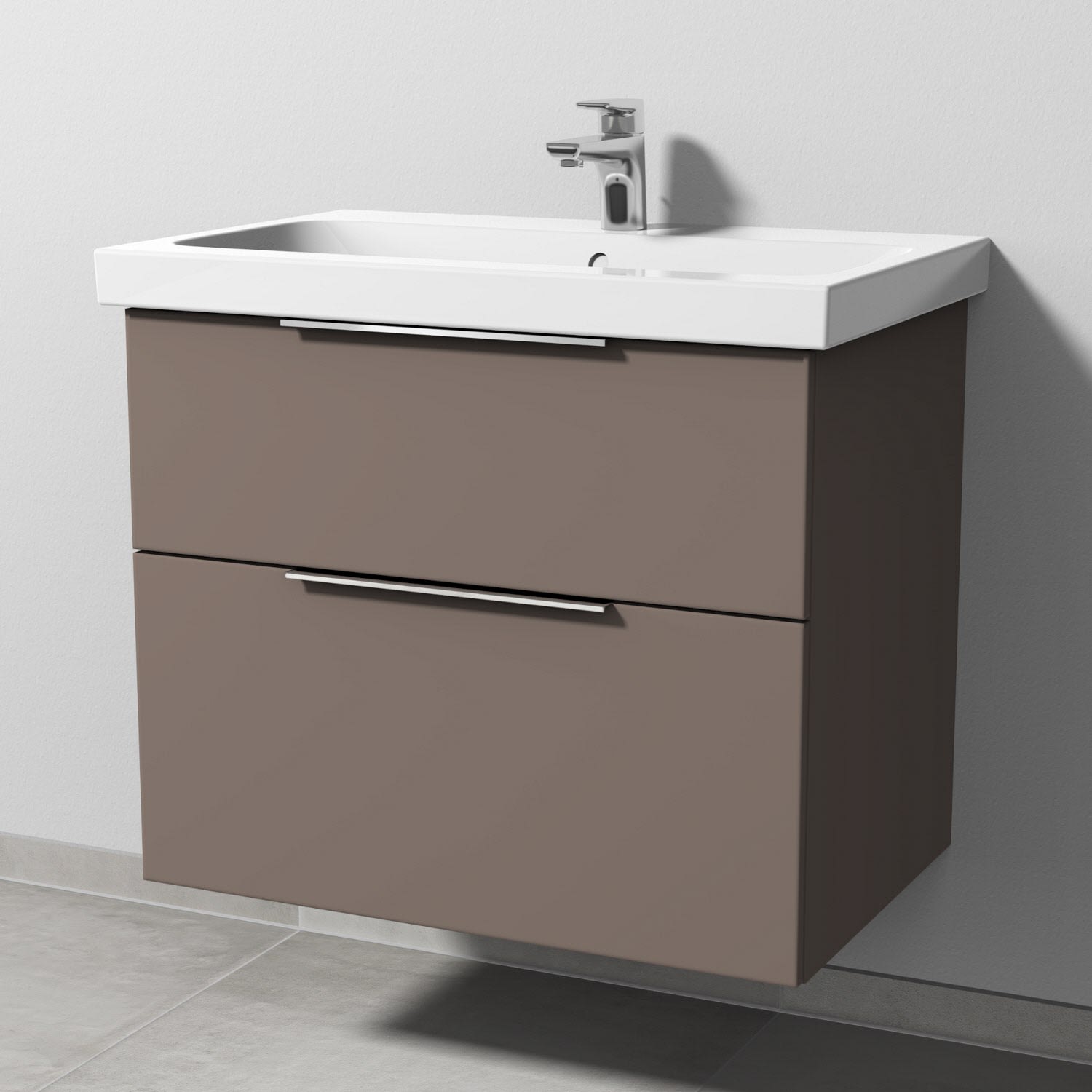 Sanipa 3way Waschtischunterbau für Keramik-Waschtisch iCon Light 75 cm, 2 Auszüge mit Aufsatzgriff