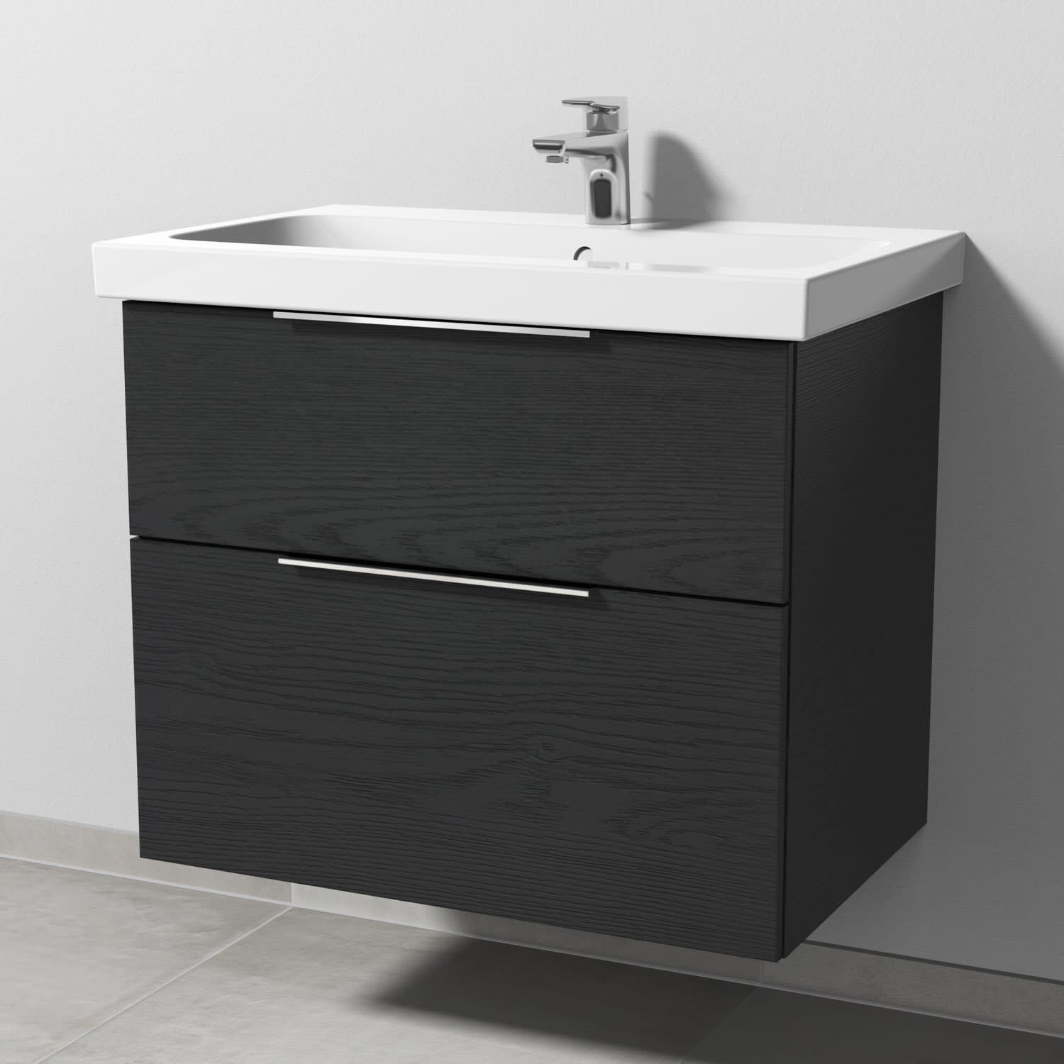 Sanipa 3way Waschtischunterbau für Keramik-Waschtisch iCon Light 75 cm, 2 Auszüge mit Aufsatzgriff