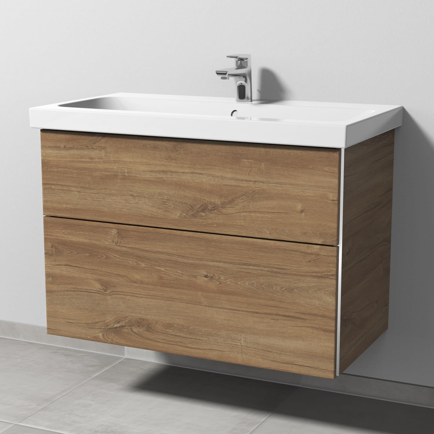 Sanipa 3way Waschtischunterbau für Keramik-Waschtisch iCon Light 90 cm, 2 Auszüge mit Griffleisten