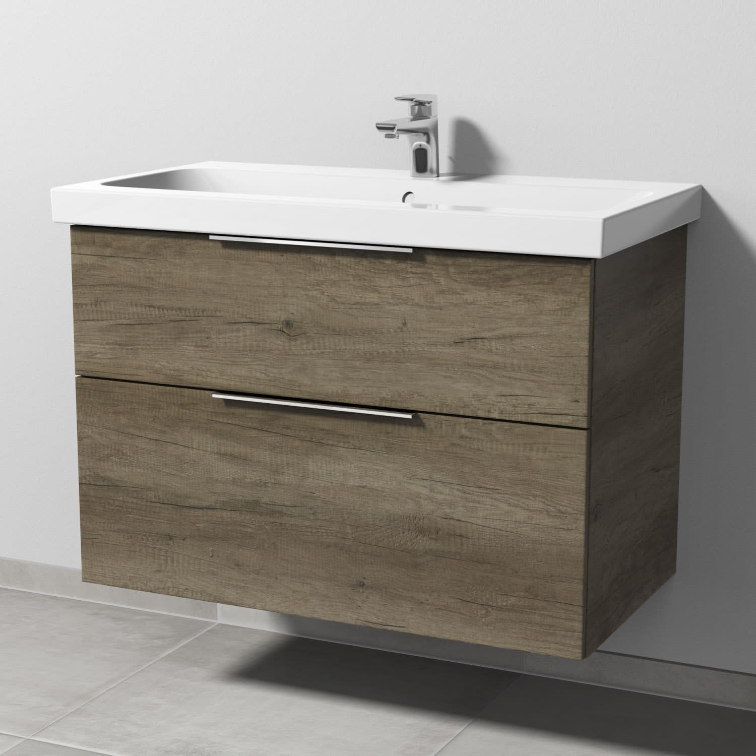 Sanipa 3way Waschtischunterbau für Keramik-Waschtisch iCon Light 90 cm, 2 Auszüge mit Aufsatzgriff