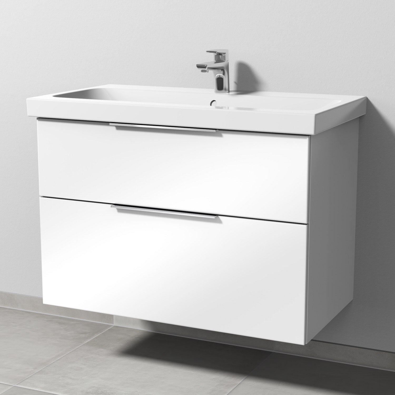 Sanipa 3way Waschtischunterbau für Keramik-Waschtisch iCon Light 90 cm, 2 Auszüge mit Aufsatzgriff