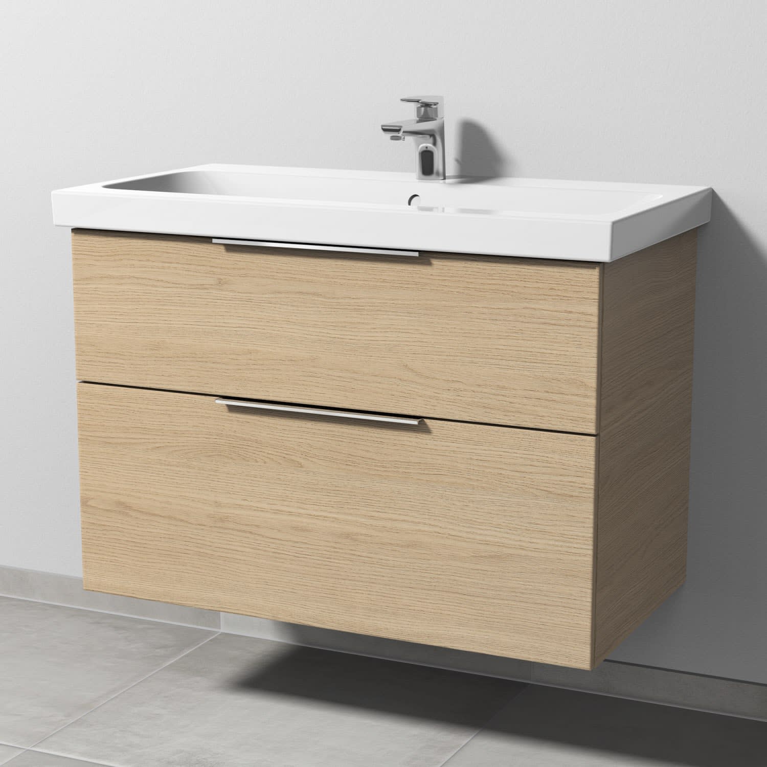 Sanipa 3way Waschtischunterbau für Keramik-Waschtisch iCon Light 90 cm, 2 Auszüge mit Aufsatzgriff