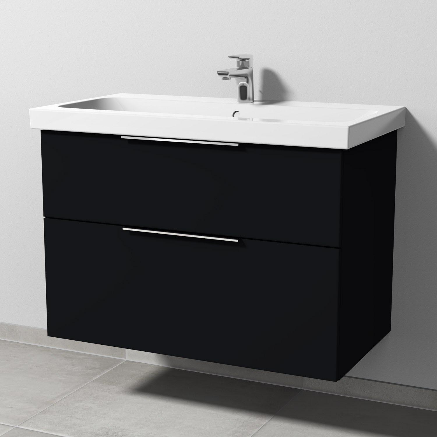 Sanipa 3way Waschtischunterbau für Keramik-Waschtisch iCon Light 90 cm, 2 Auszüge mit Aufsatzgriff