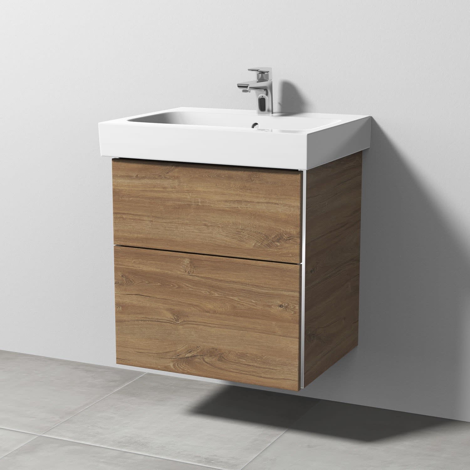 Sanipa 3way Waschtischunterbau für Keramik-Waschtisch iCon 60 cm, 2 Auszüge mit Griffleisten