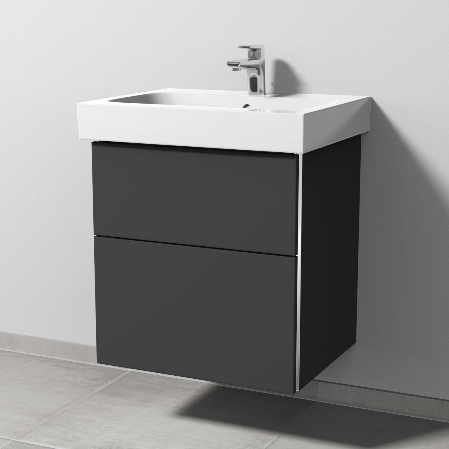 Sanipa 3way Waschtischunterbau für Keramik-Waschtisch iCon 60 cm, 2 Auszüge mit Griffleisten