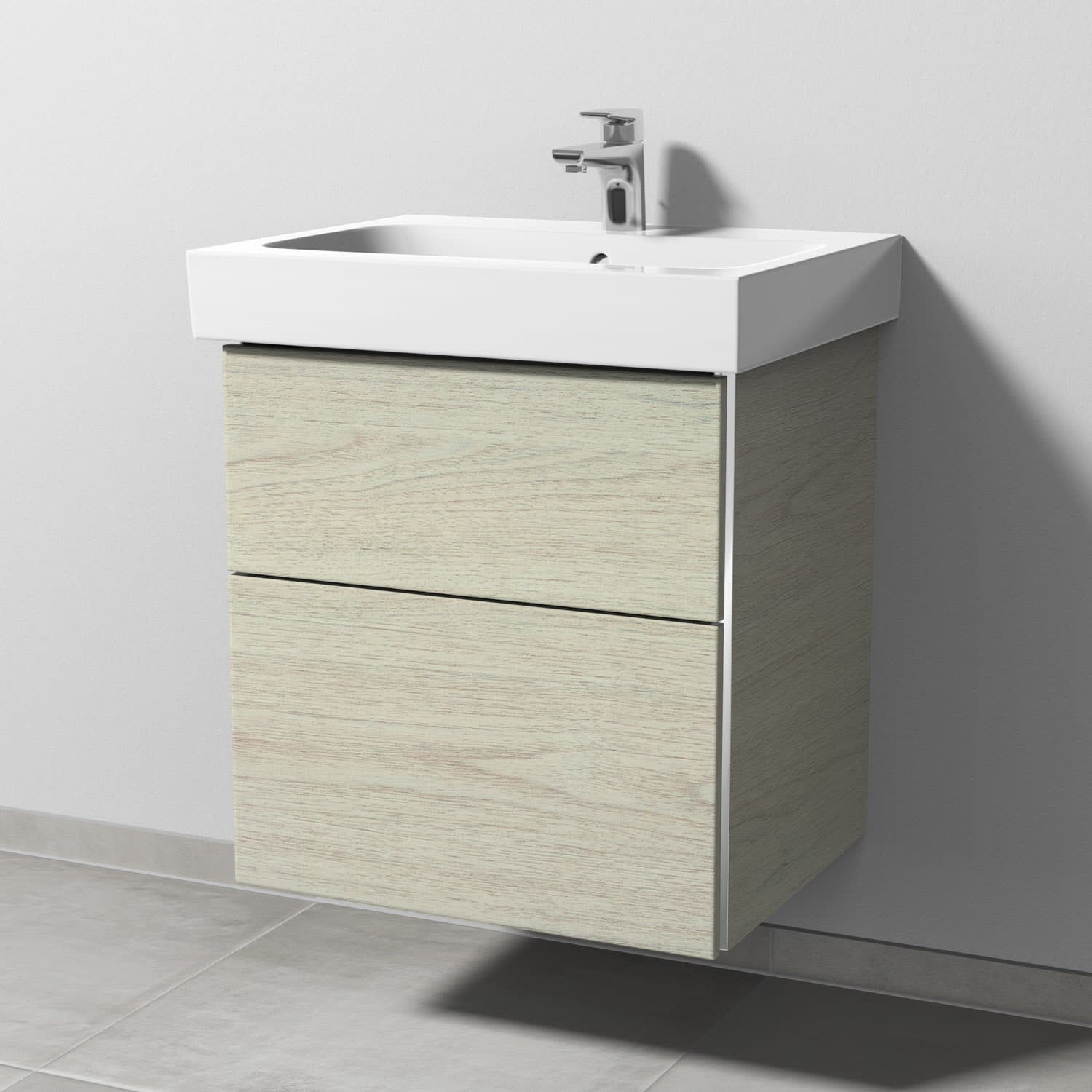 Sanipa 3way Waschtischunterbau für Keramik-Waschtisch iCon 60 cm, 2 Auszüge mit Griffleisten
