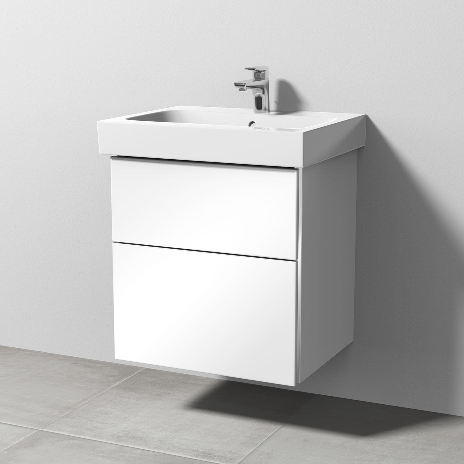 Sanipa 3way Waschtischunterbau für Keramik-Waschtisch iCon 60 cm, 2 Auszüge mit Griffleisten