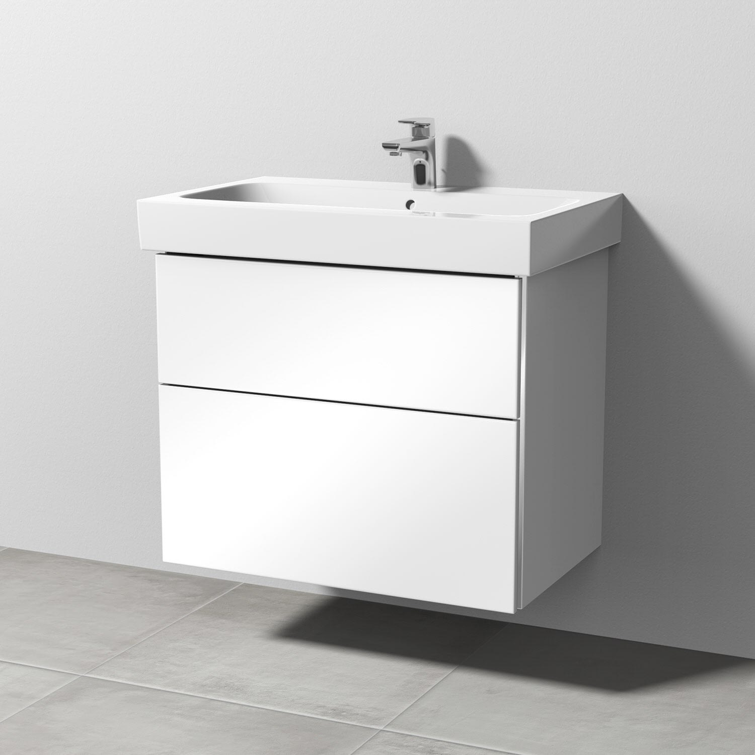 Sanipa 3way Waschtischunterbau für Keramik-Waschtisch iCon 75 cm, 2 Auszüge mit Griffleisten