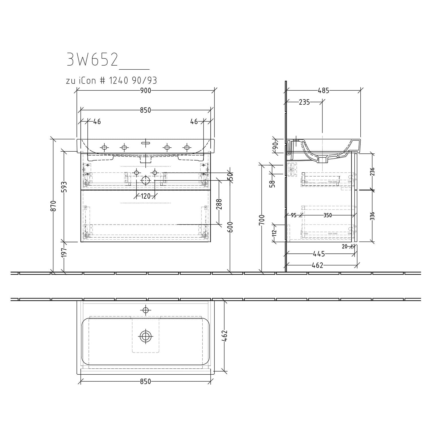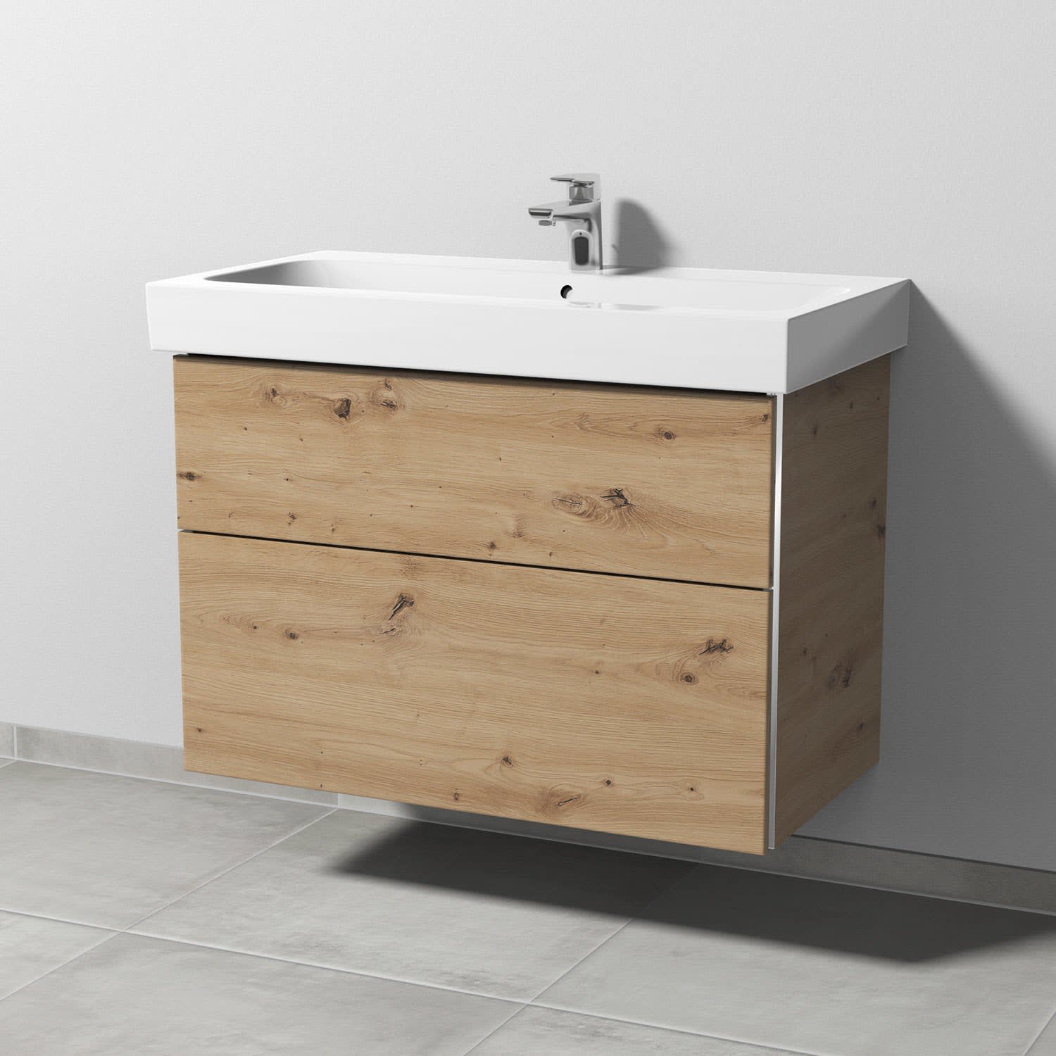 Sanipa 3way Waschtischunterbau für Keramik-Waschtisch iCon 90 cm, 2 Auszüge mit Griffleisten
