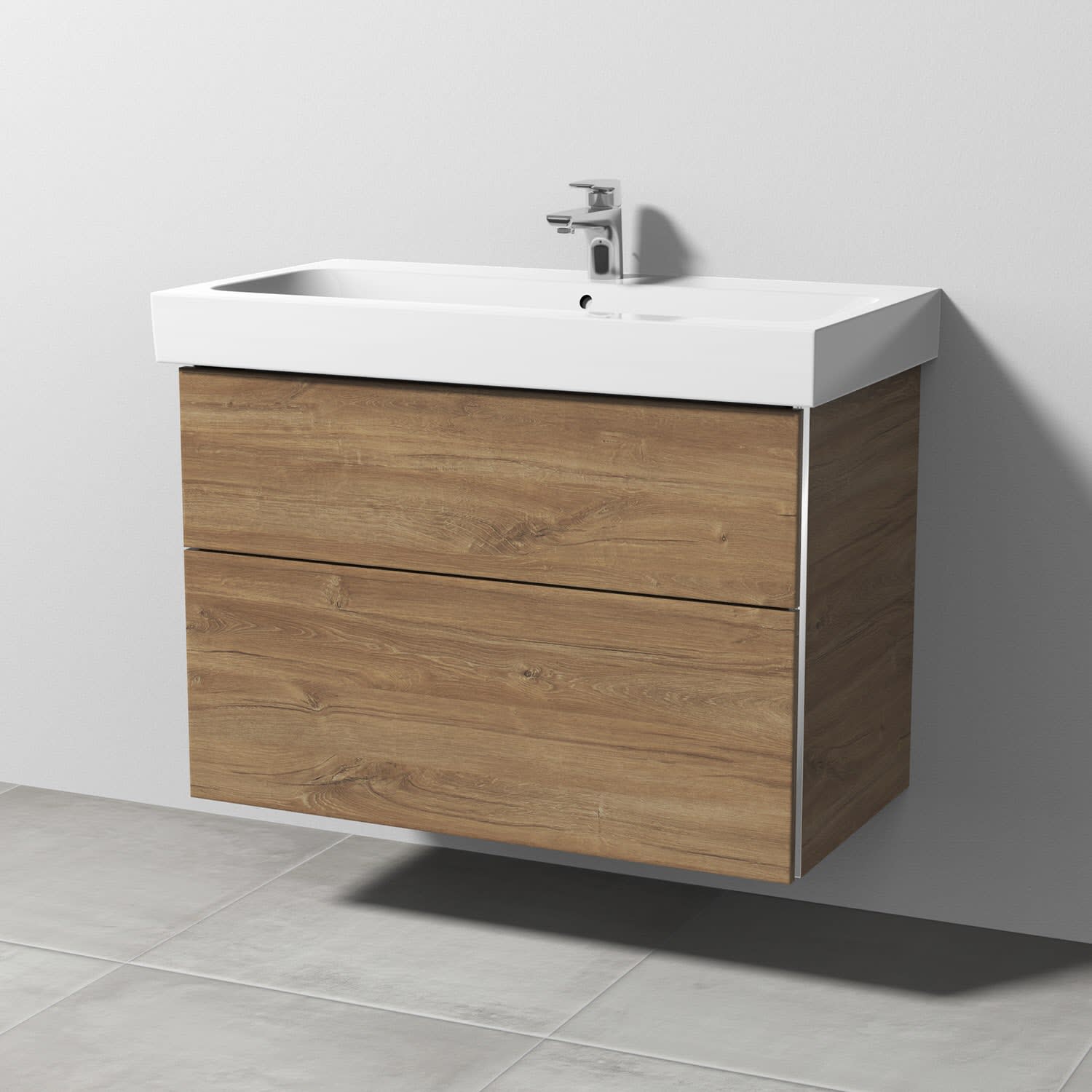 Sanipa 3way Waschtischunterbau für Keramik-Waschtisch iCon 90 cm, 2 Auszüge mit Griffleisten