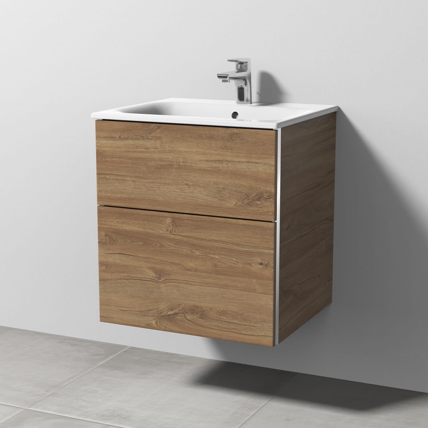 Sanipa 3way Waschtischunterbau für Keramik-Waschtisch Renova Plan Slim 55 cm, 2 Auszüge mit Griffleisten