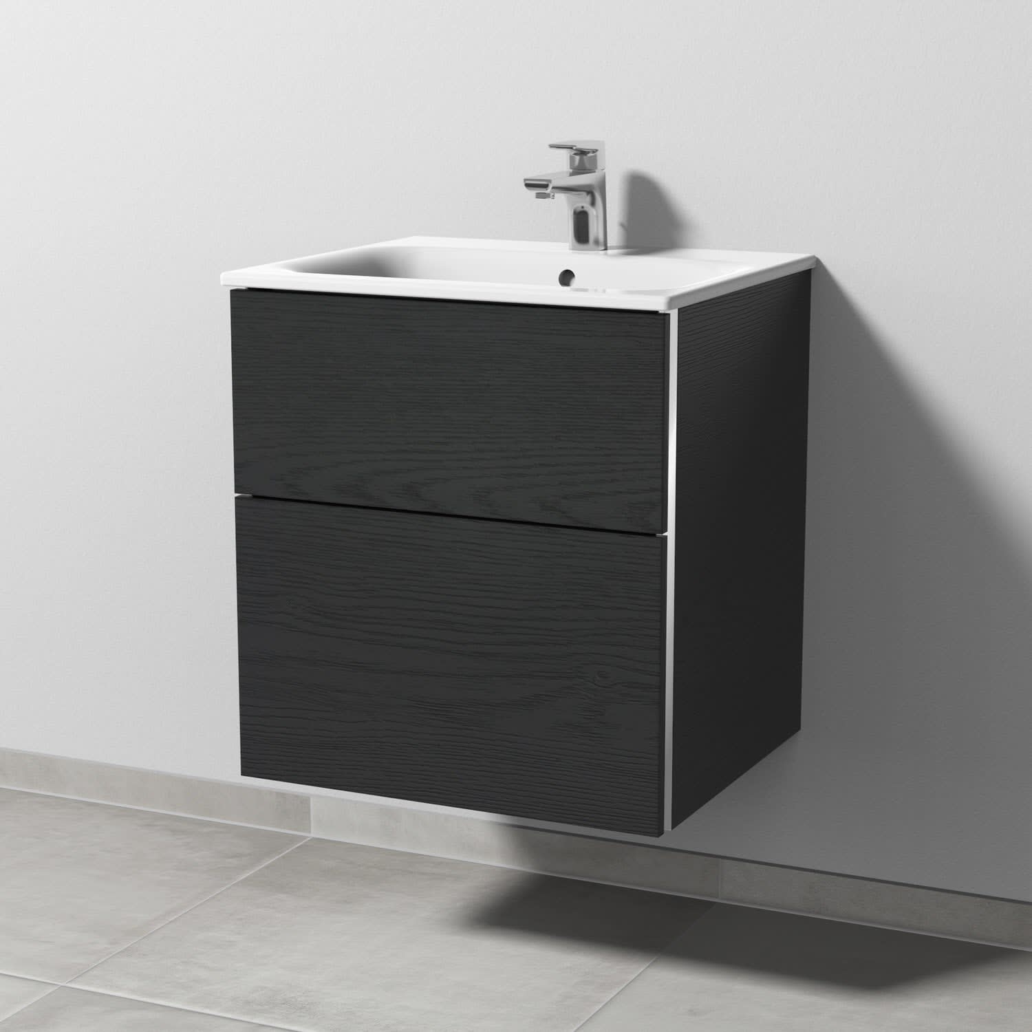 Sanipa 3way Waschtischunterbau für Keramik-Waschtisch Renova Plan Slim 55 cm, 2 Auszüge mit Griffleisten