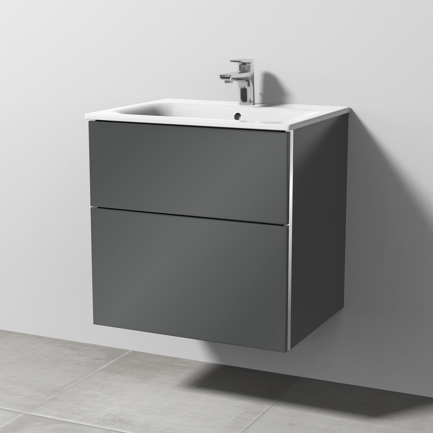 Sanipa 3way Waschtischunterbau für Keramik-Waschtisch Renova Plan Slim 60 cm, 2 Auszüge mit Griffleisten