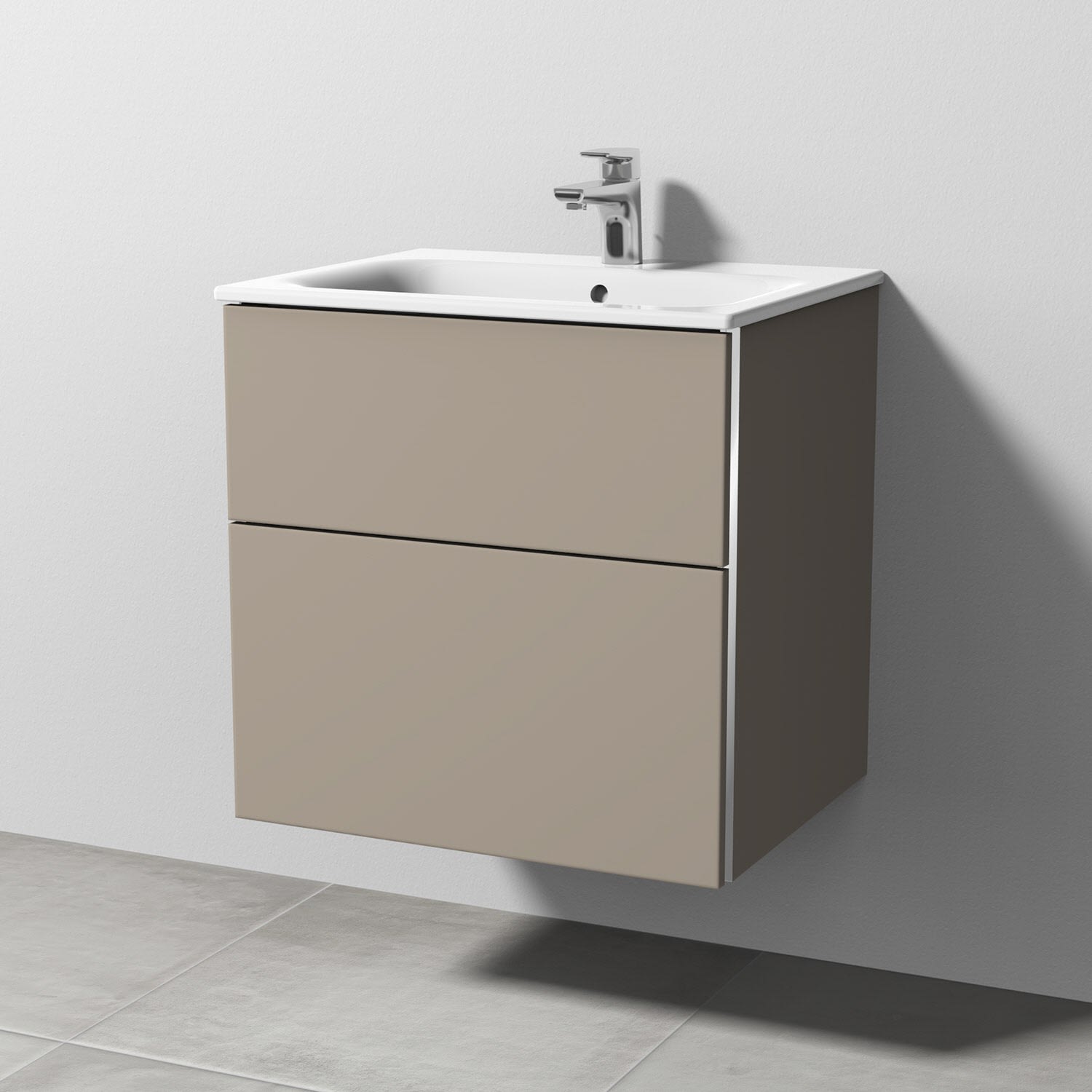 Sanipa 3way Waschtischunterbau für Keramik-Waschtisch Renova Plan Slim 60 cm, 2 Auszüge mit Griffleisten