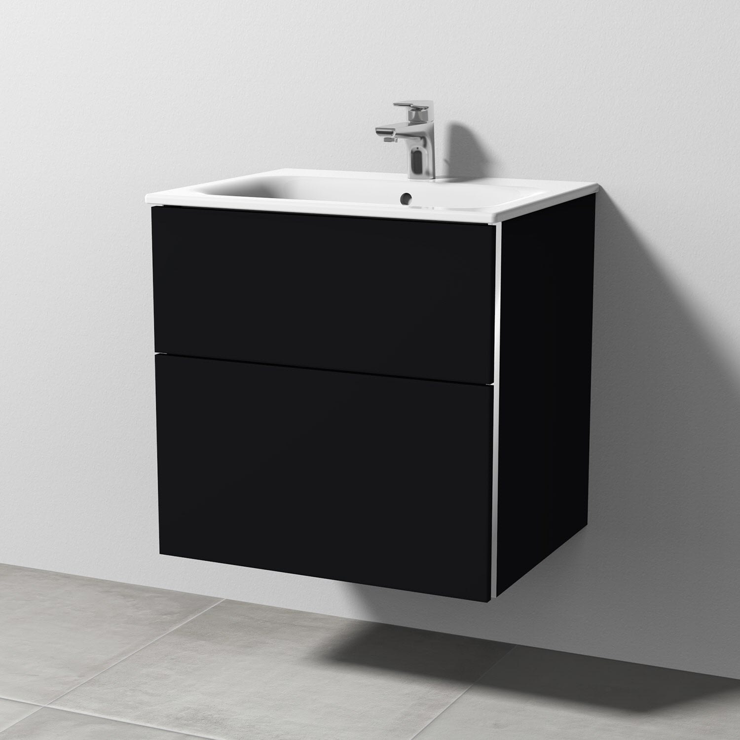 Sanipa 3way Waschtischunterbau für Keramik-Waschtisch Renova Plan Slim 60 cm, 2 Auszüge mit Griffleisten