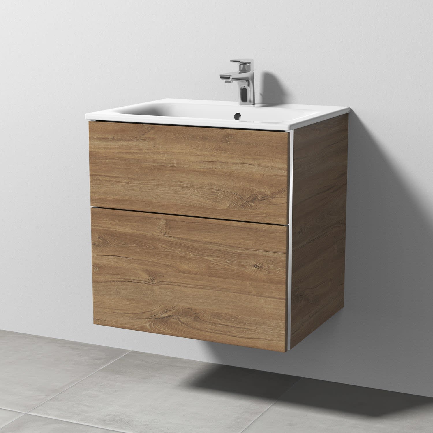 Sanipa 3way Waschtischunterbau für Keramik-Waschtisch Renova Plan Slim 60 cm, 2 Auszüge mit Griffleisten