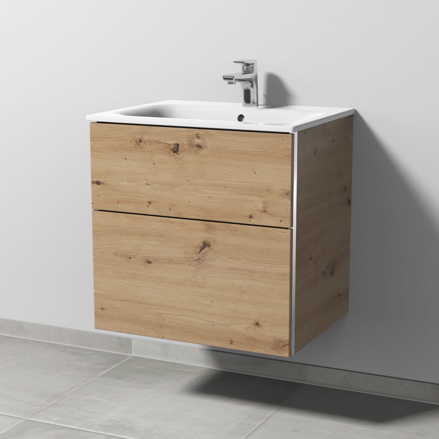 Sanipa 3way Waschtischunterbau für Keramik-Waschtisch Renova Plan Slim 60 cm, 2 Auszüge mit Griffleisten
