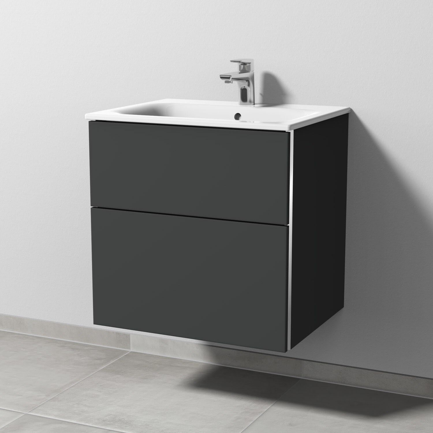 Sanipa 3way Waschtischunterbau für Keramik-Waschtisch Renova Plan Slim 60 cm, 2 Auszüge mit Griffleisten