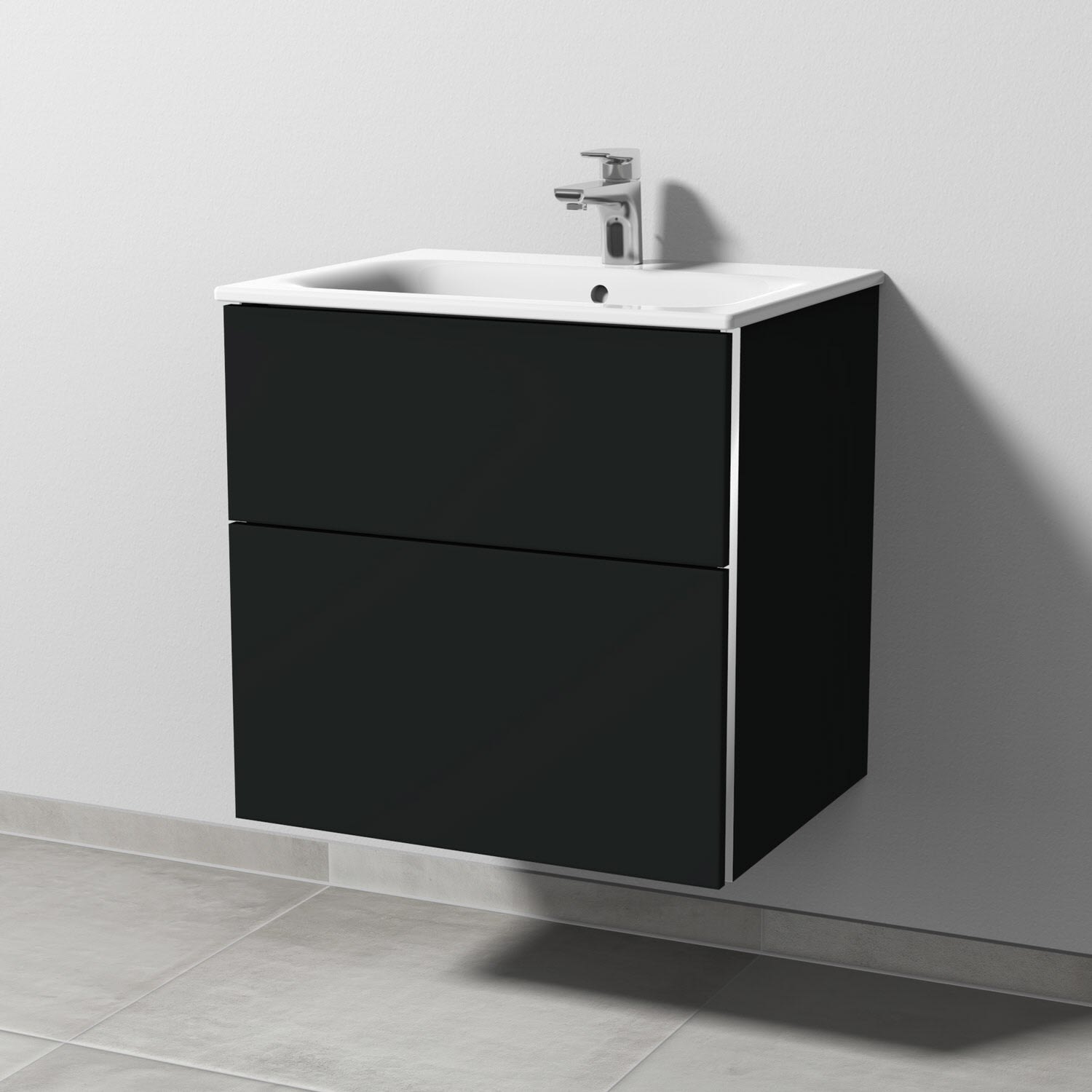 Sanipa 3way Waschtischunterbau für Keramik-Waschtisch Renova Plan Slim 60 cm, 2 Auszüge mit Griffleisten