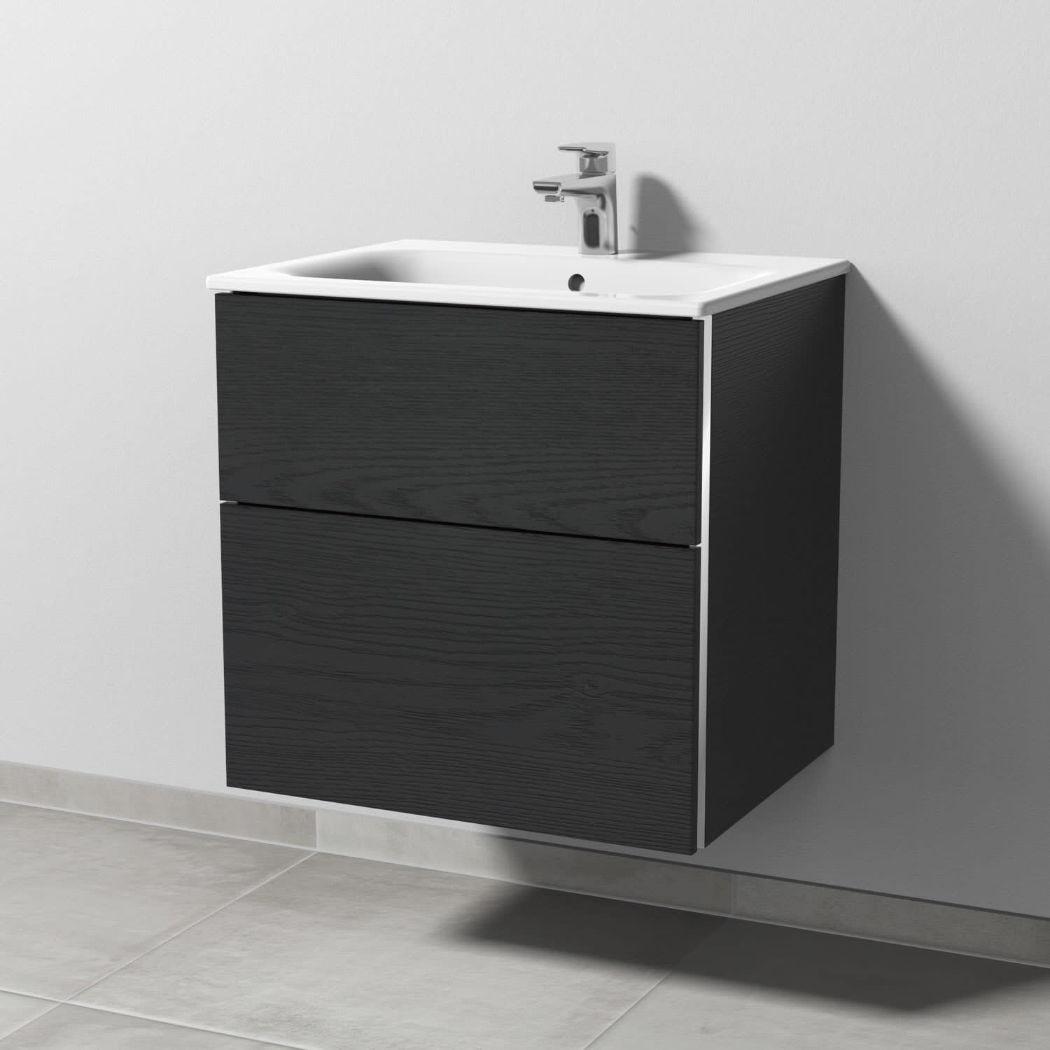 Sanipa 3way Waschtischunterbau für Keramik-Waschtisch Renova Plan Slim 60 cm, 2 Auszüge mit Griffleisten