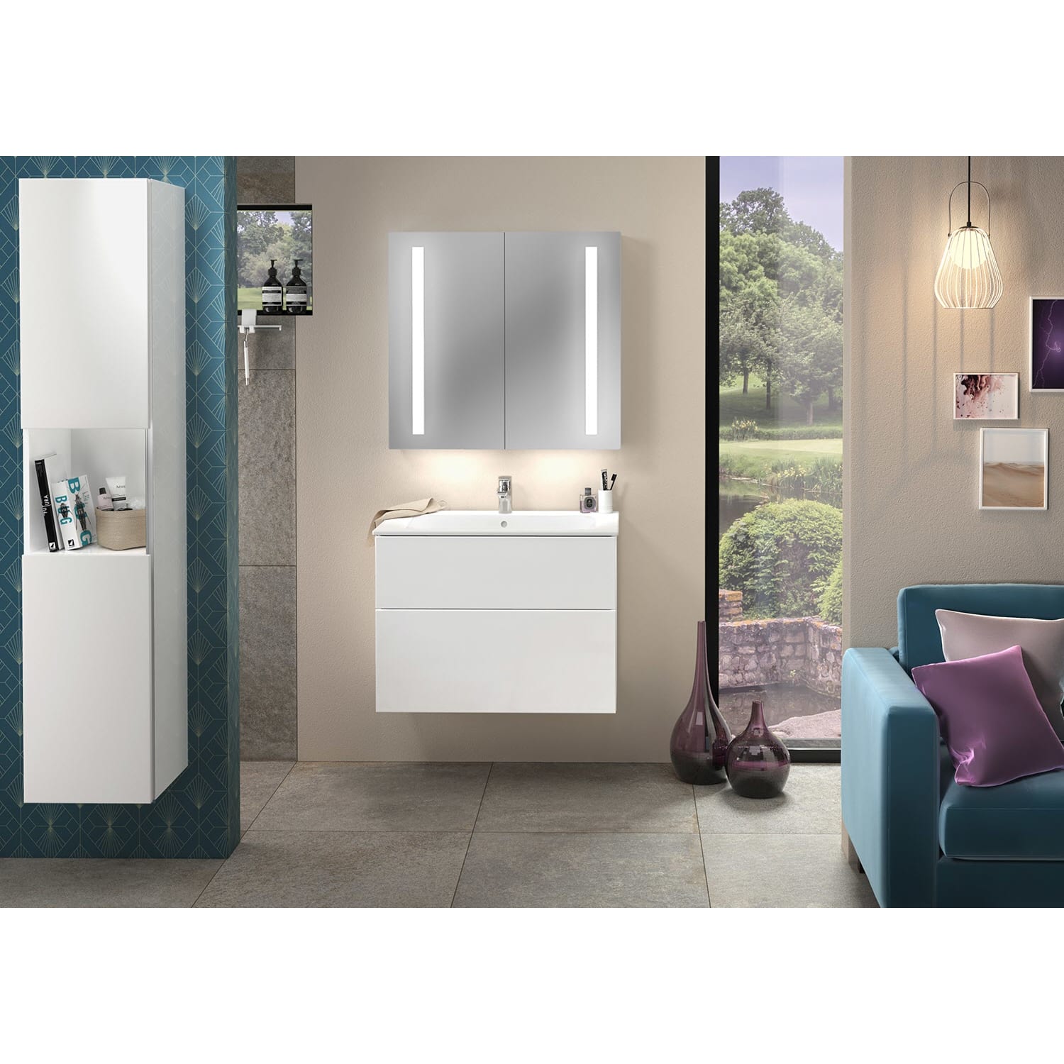 Sanipa 3way Waschtischunterbau für Keramik-Waschtisch Renova Plan Slim 80 cm, 2 Auszüge mit Griffleisten